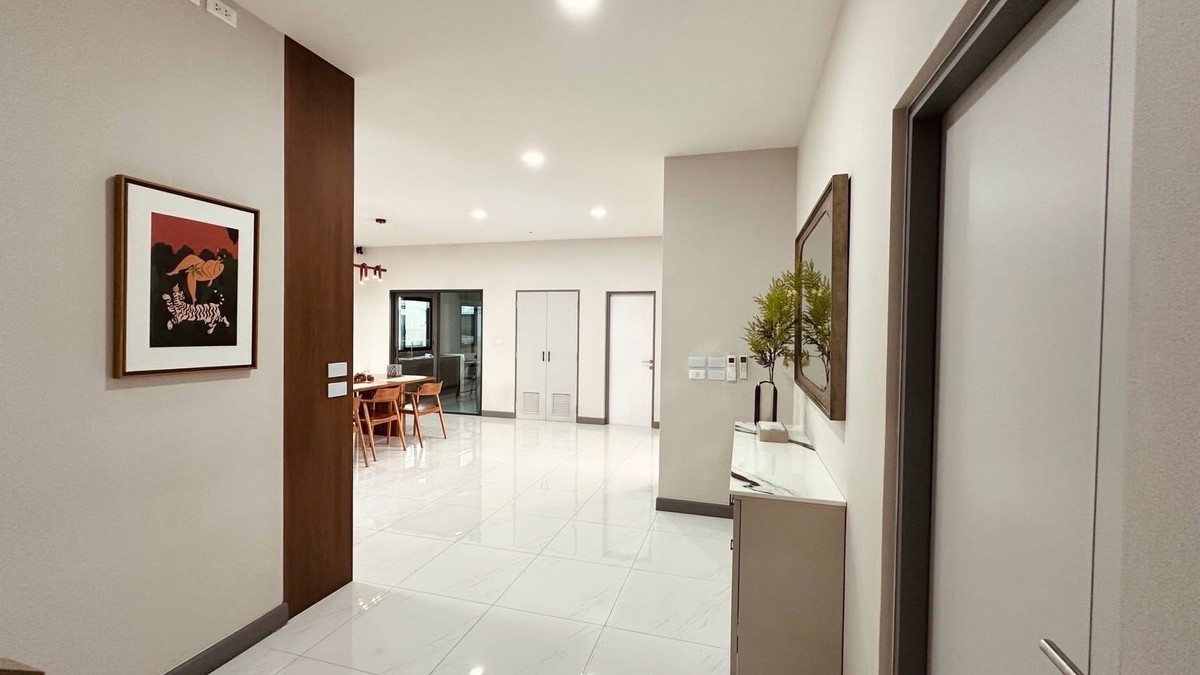 ▲ The City Bangna ▲ Near Mega Bangna, just 2 minutes Rent 155,000 baht / month Luxury detached house Fully Furnished, The City Bangna project Land area 75.5 sq m Usable area 331 sq m North 4 bedrooms 5 bathrooms 2 Living room 1 maids room, separate bathroom Parking for 3 cars Contact for inquiries / make an appointment to view the house Line Official: @sheserved Tel Contact number (Anew) Tel Contact number (Punn) #TheCityBangna #House for rent Bangna #Luxury house for rent #LuxuryHouseForRent