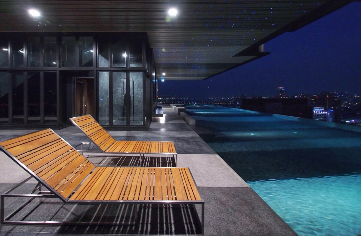 Condo for rent Rhythm Ekkamai , usable area 31 square meters, 18th floor , has furniture. Complete with electrical appliances Rental price 27,000 baht/month **Accepting customers of all nationalities.