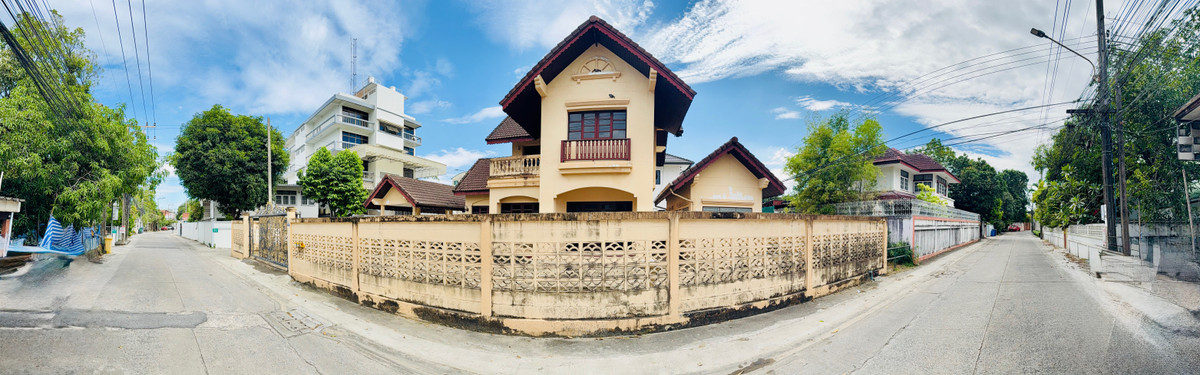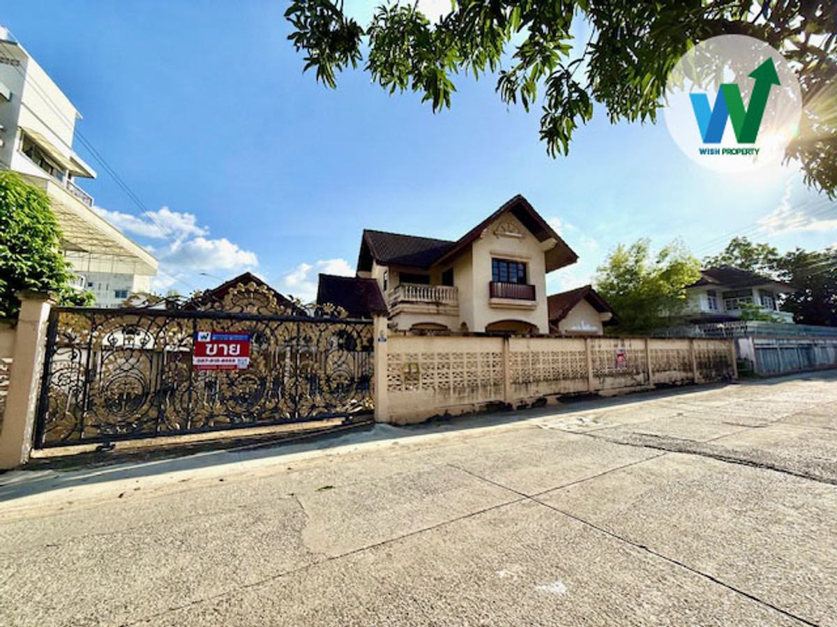 Land for sale with buildings Single detached house, Mittraphap On Nut, corner plot, beautiful square, next to the road, near the expressway, motorway, BTS Sri Nut.
