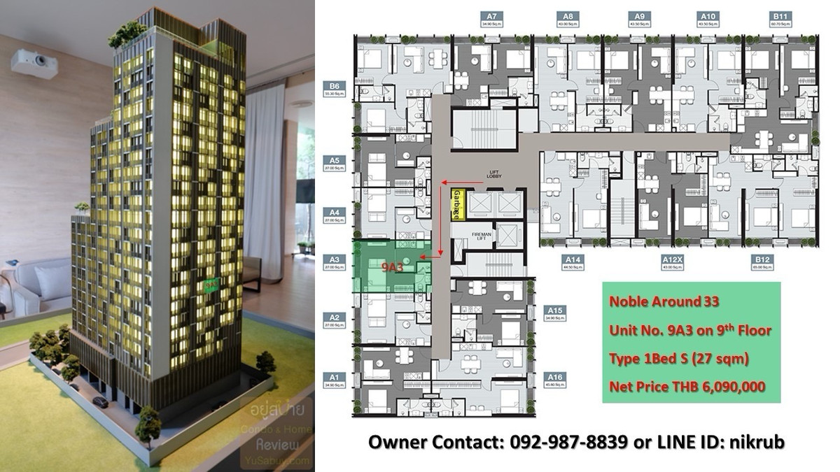 For Sale or Rent (for sale or rent) noble Around33 new room, never lived in Good floor, beautiful number 17/77, 9th floor