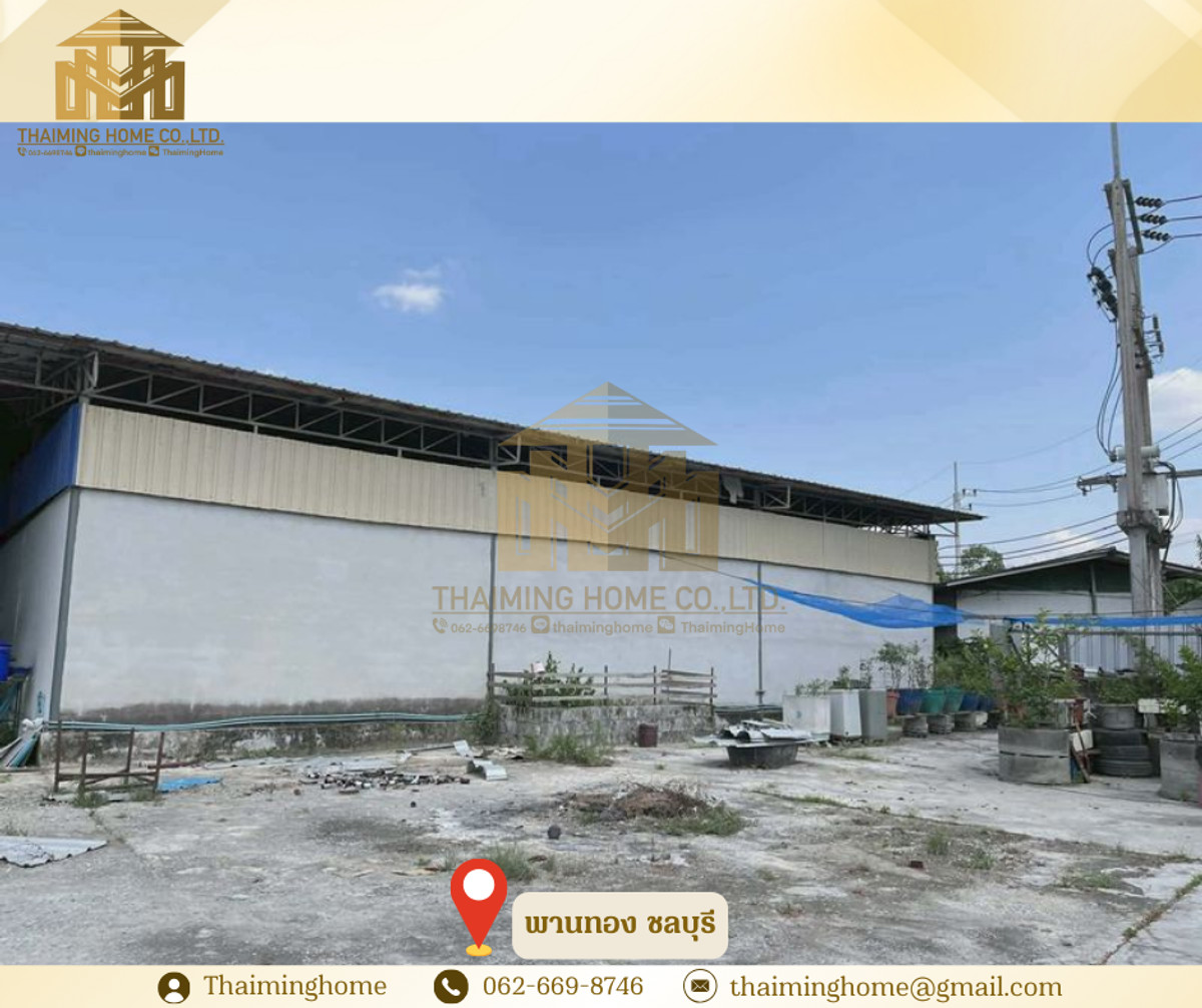 Land for sale with warehouse and buildings, 2 rai, Phan Thong District, Chonburi (Property Code TW4-1121225) Details: - Warehouse area: 1,100 sq.m. - Office / Staff accommodation - Concrete road access - 3-phase electricity available at the property - Yellow zone area - Previously used as a plastic factory - Large vehicles can access the property Nearby locations: - Robinson Chonburi - Amata Industrial Estate - Ban Bueng Hospital - Lotus Ban Bueng Sale conditions: - Price: 6 million baht per rai (including transfer fees, all in one transaction) -------------------------------------- บริษัท ไทยหมิง โฮม จำกัด Thaiming Home Co.,Ltd. 泰明房园 房产公司 ----------------------- Contact ติดต่อ : Contact number Contact : Contact number คุณหมิง(中文) Line ID: thaiminghome Line ID: @thaiminghome https://lin.ee/PkkHwYv Wechat : ThaimingHome E-mail : Contact email -----------------------