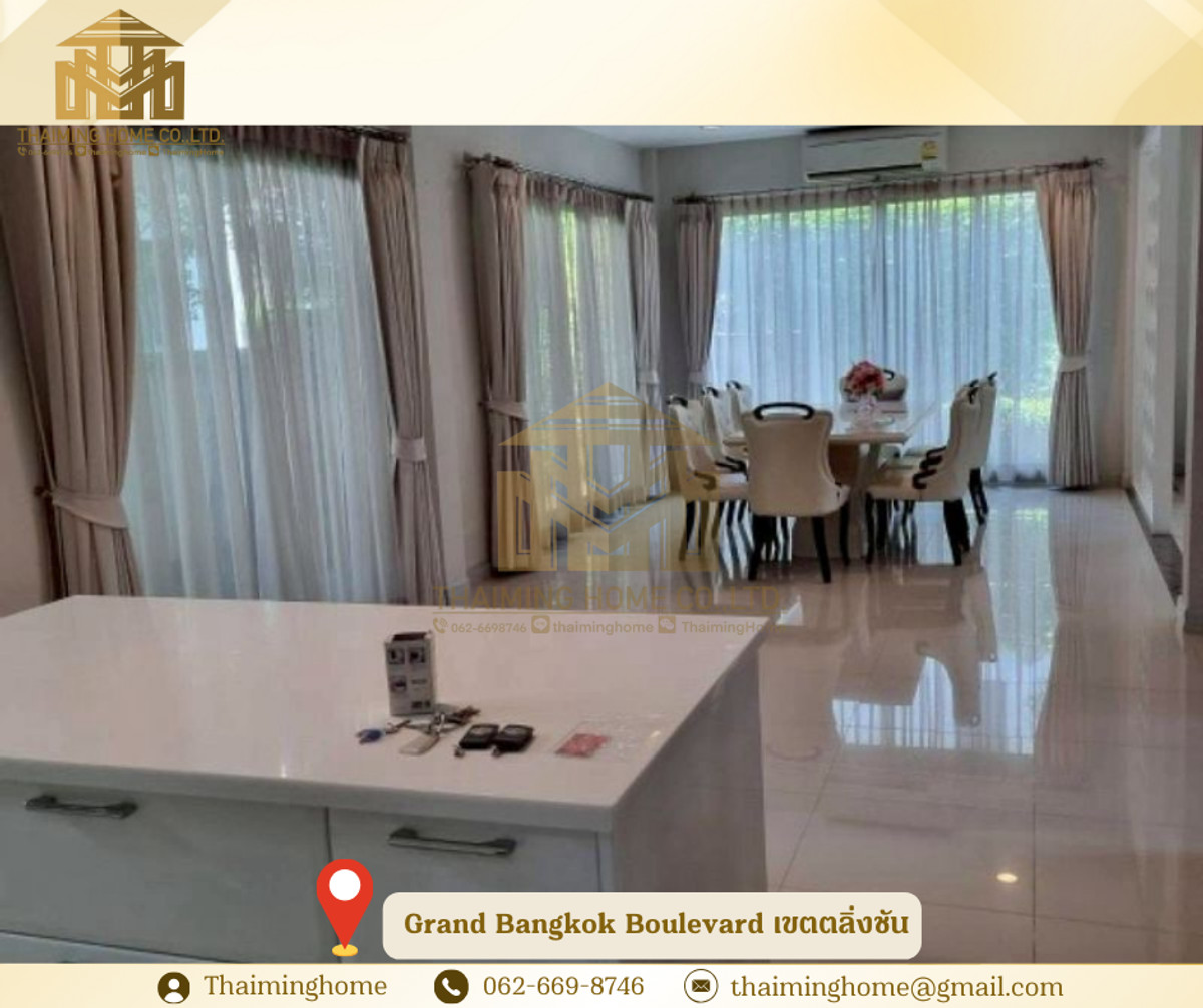 Single house for rent, Grand Bangkok Boulevard, Taling Chan District, Bangkok (Property Code TH4-271225) Details - Land size: 86.3 sq.wah - Land area: 315 sq.m. - 2-story house - 4 sections - 4 rooms - Separate maid's room with all necessary amenities - Clearly visible and ready to move in, with access to the garage from every angle. Nearby amenities: - The Walk Ratchaphruek - Kasemrad Rattanathibet Hospital (formerly Karunvej Hospital) - CentralGateway - CentralNitt Villa - Big C Tiwanon, Nonthaburi Rental conditions: - Minimum 1-year lease - 2 months security deposit - 1 month advance payment - Additional 65,000 THB per month --------------------------------- บริษัท ไทยหมิง โฮม จำกัด Thaiming Home Co.,Ltd. 泰明房园 房产公司 ----------------------- Contact ติดต่อ : Contact number Contact : Contact number คุณหมิง(中文) Line ID: thaiminghome Line ID: @thaiminghome https://lin.ee/PkkHwYv Wechat : ThaimingHome E-mail : Contact email -----------------------