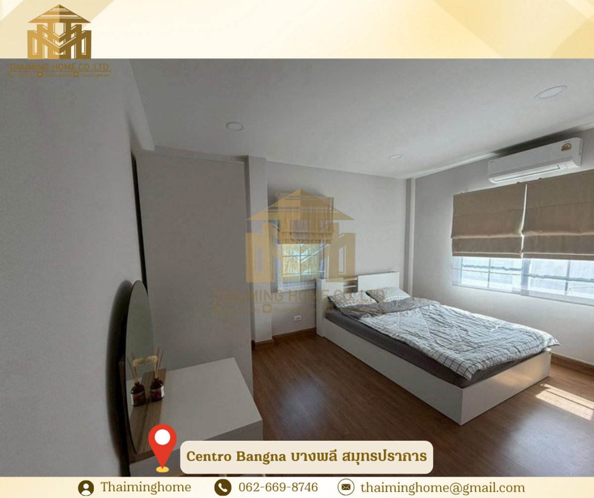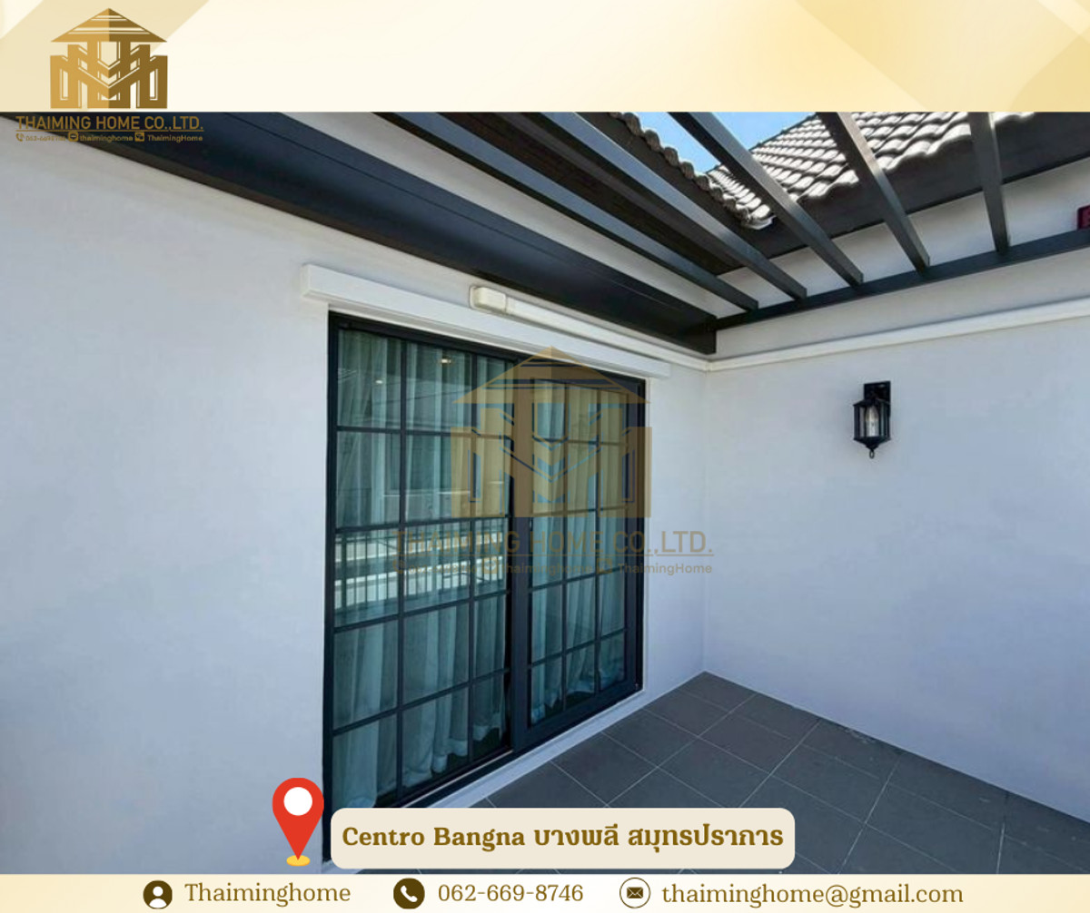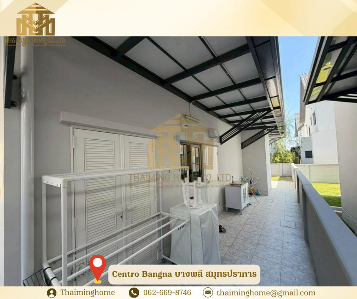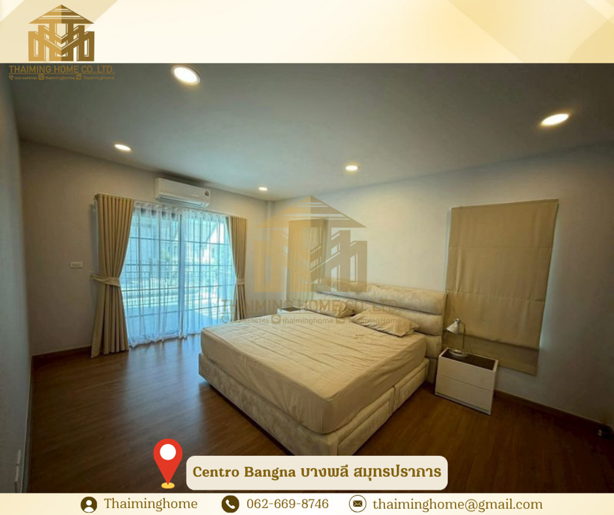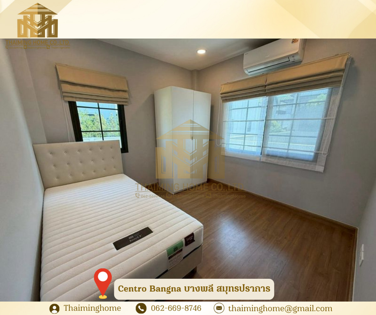 Detached house for rent, ready to move in, Centro Bangna, Bang Phli, Samut Prakan (Property Code TH4-291225) Details - Usable area 280 sq.m., land area 66.8 sq.wa. - 1-year-old house, never been rented before. - 4 bedrooms, 5 bathrooms, 2 living rooms - North facing, not hot, located at the beginning of the soi within the project, convenient location. - Awning at the back of the house, with completed piling. - Covered parking for 3 cars. - Fully furnished, ready to move in. - Foreign tenants welcome. Nearby Places - Bangna-Trat Expressway - Mega Bangna / IKEA Bangna (1 km.) - Market Village Suvarnabhumi - Suvarnabhumi Airport - Concordian International School - Berkeley International School Rental Conditions - Minimum 1-year contract - 2 months security deposit - 1 month advance rent - Rent 150,000 THB per month ---------------------------------------- บริษัท ไทยหมิง โฮม จำกัด Thaiming Home Co.,Ltd. 泰明房园 房产公司 ----------------------- Contact ติดต่อ : Contact number Contact : Contact number คุณหมิง(中文) Line ID: thaiminghome Line ID: @thaiminghome https://lin.ee/PkkHwYv Wechat : ThaimingHome E-mail : Contact email -----------------------
