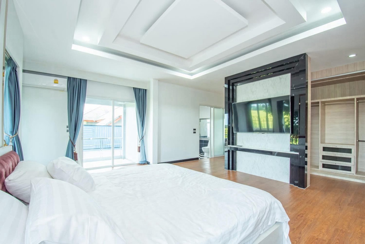 House for sale & rent in Huay Yai private pool 🫧 Pet friendly ⛳⛳ Huay Yai, Pattaya 💥💥 Sell 15,900,000 💥💥 Rent 80,000 THB/ month Deposit 2 months 1 month in advance Private pool Very large house, all bedrooms are spacious, airy, comfortable, corner house, can park 6++ 4 bedrooms 4 bathrooms 1 living room 1 kitchen Built-in the whole house, 7 air conditioners, 5 large TVs Install a good water filter, 3 large water tanks, parking for 3 cars, garages inside the house, outside can park 3 cars, the house is on the corner Land: 191 sq.w., usable area 600 sq.m.