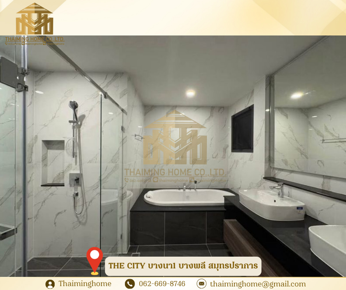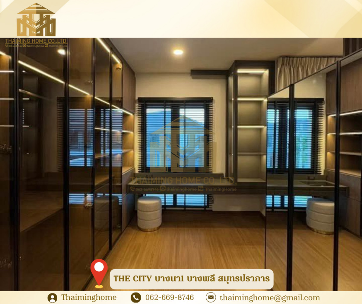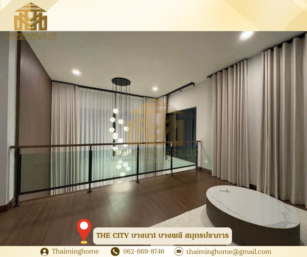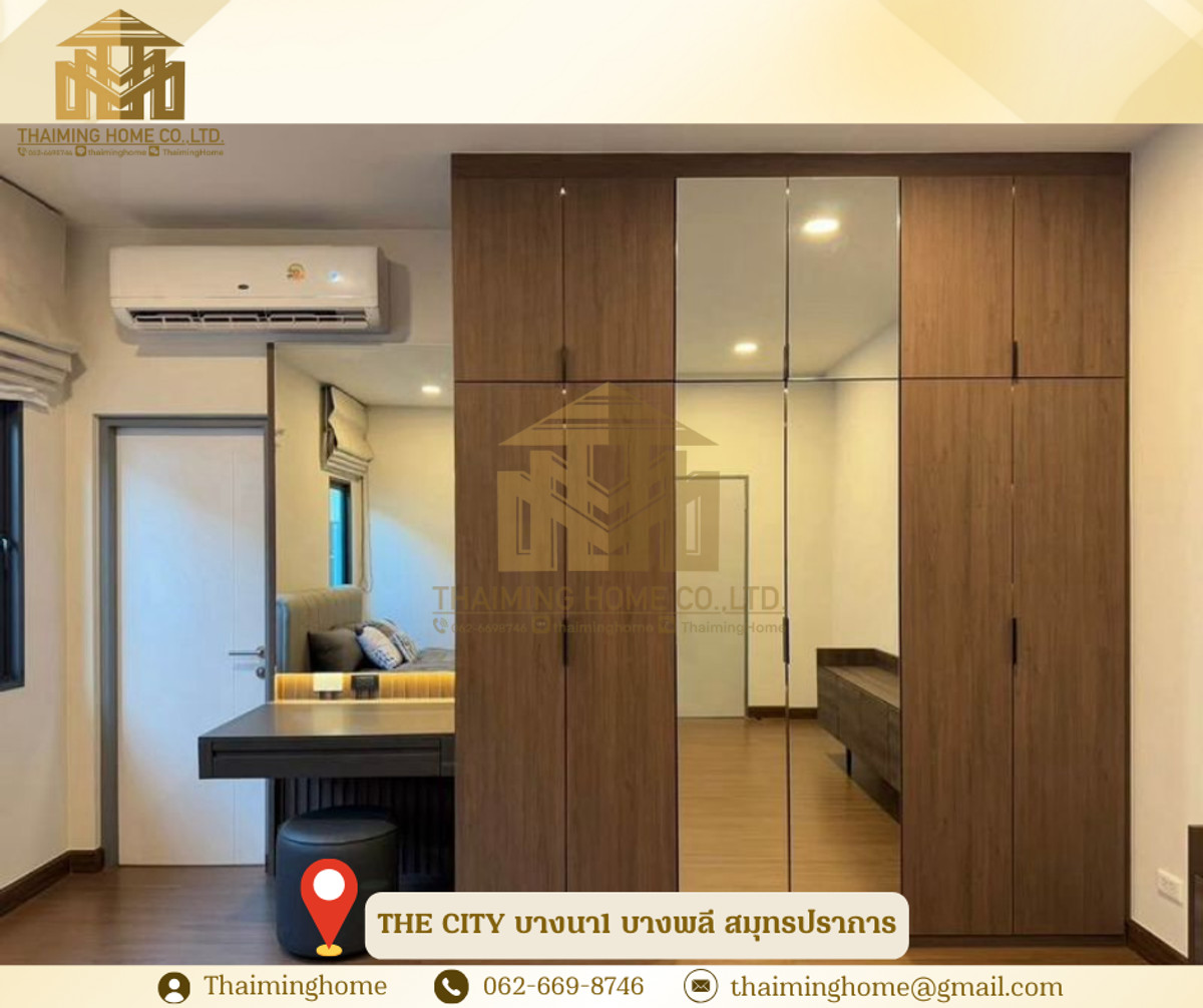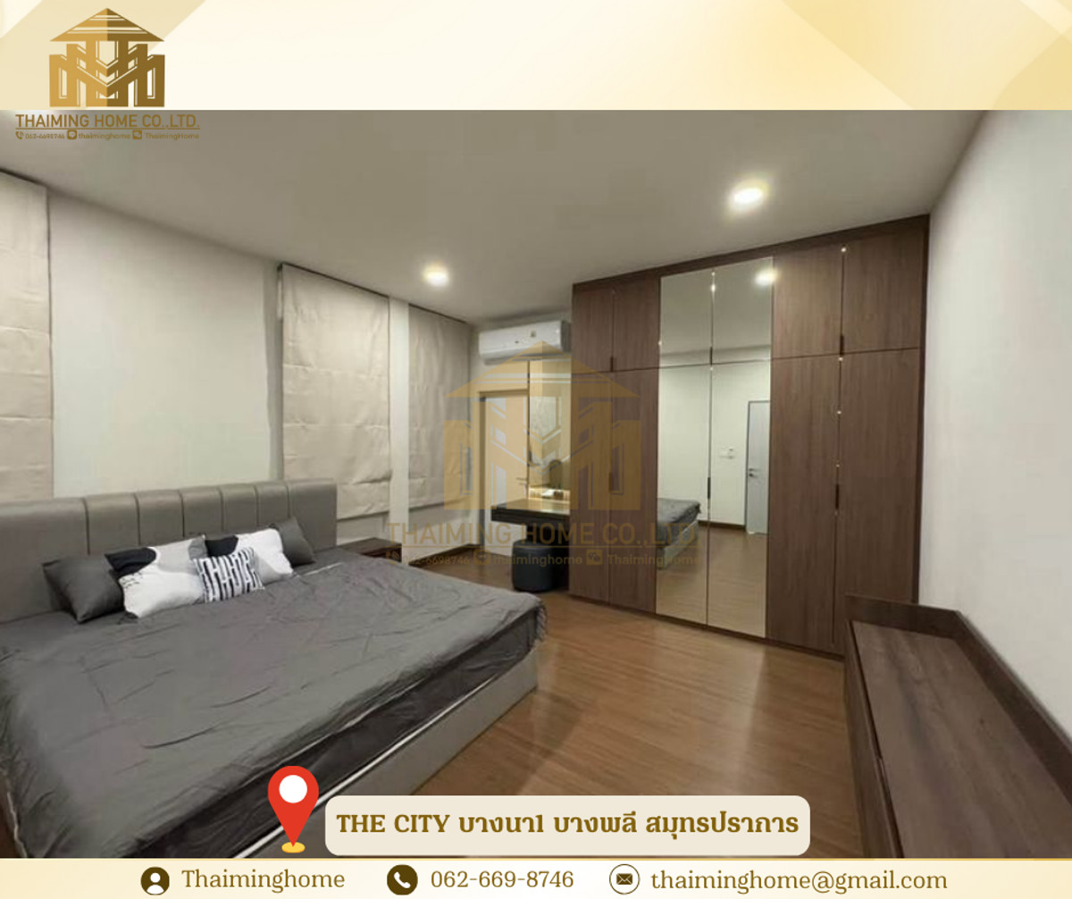 House for Rent, THE CITY Bangna 1, Bang Phli, Samut Prakan (Property Code TH4-301225) Details - Usable area 313 sq.m. - 4 Bedrooms - 5 Bathrooms - 1 Kitchen - 1 Maid's Room - 3 Parking Spaces (No Double Parking) - Fully Furnished - Air Conditioners and Curtains in all rooms - Appliances - 1 x 75-inch TV, 2 x 65-inch TVs - Washing Machine - Refrigerator - Range Hood - Electric Stove - Foreigners of all nationalities welcome - Pets allowed (maximum 2 pets weighing 7 kg each) - Smoking allowed outside the house Nearby Places - Mega Bangna - Bangna Golf Course - Ramkhamhaeng University, Bangna Campus - Thai Watsadu Bangna Branch - Several International Schools - Srinakarin Hospital Rental Conditions: - Minimum 1-year contract - 2-month security deposit - 1-month advance rent - Rent: 180,000 THB per month --------------------------------- บริษัท ไทยหมิง โฮม จำกัด Thaiming Home Co.,Ltd. 泰明房园 房产公司 ----------------------- Contact ติดต่อ : Contact number Contact : Contact number คุณหมิง(中文) Line ID: thaiminghome Line ID: @thaiminghome https://lin.ee/PkkHwYv Wechat : ThaimingHome E-mail : Contact email -----------------------