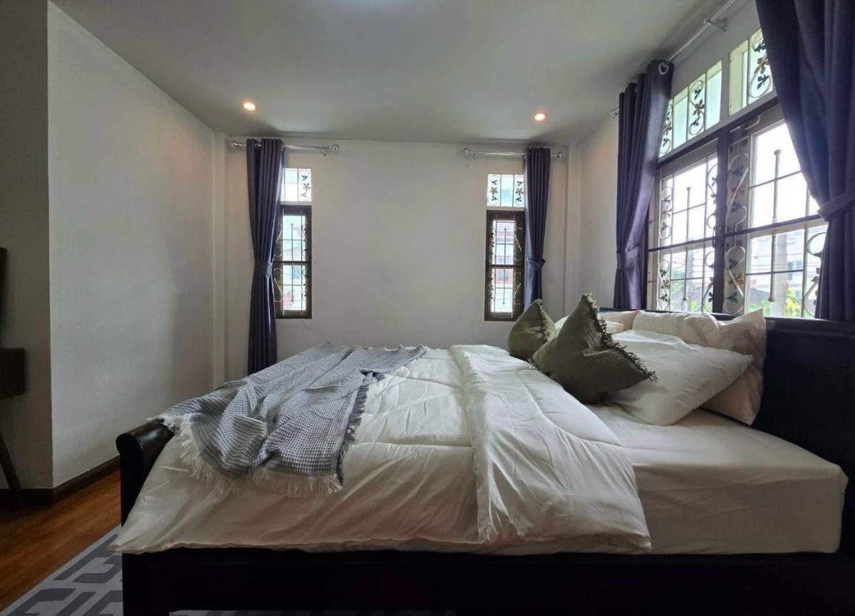 Single house for rent Sirindep Village, Lat Phrao 101 intersection 46 House 42.5 square wah -Usable area 175 square meters -3 bedrooms -3 bathrooms -1 living room -2 kitchen -2 car parking The front of the house is 9 meters wide - 5 air conditioners, 1 TV, 1 refrigerator , 1 microwave, 2 sofas, 2 new mattresses - Pets are not accepted 2 year contract, 1 month in advance, 2 month deposit Convenient transportation - There is a yellow line electric train - near the motorway - near the expressway Nearby places - near The Mall Bangkapi - near Central Eastville , places to eat, cafes and complete amenities If interested, contact Rent 35,000 baht/month Tel: Contact number Line: may230292 WeChat: may230292