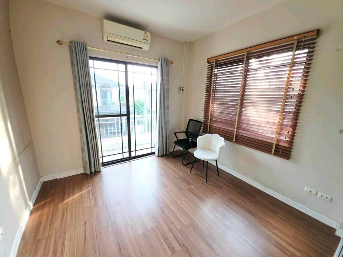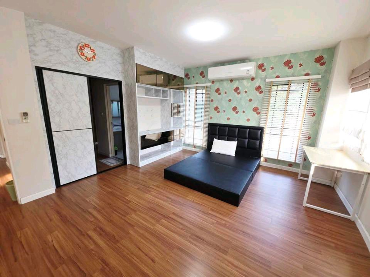 For rent, Manthana Lake Watcharapol Village , the house is in the lake zone (Charming Zone) , area 87 square wah , usable area. 300 square meters Pets allowed🐱 The front of the house faces south. Receive the wind ♦️ Within the project, there is a 2-story luxury clubhouse with a saltwater swimming pool, fitness center, sauna room, 2 playground zones, and green areas for relaxing. There is a basketball court 📍The village can enter and exit in 2 ways, Sukhapiban Road 5 and Saimai 56 https://maps.app.goo.gl/y15xsrcWgU8ciWaD9 ✨Details 6 bedrooms, 3 bathrooms 1 fitness room 1 knockdown house 2 kitchen Parking in front of the house for 2 cars ✨Amenities Fully furnished Waterfall 100,000 baht (complete set) 7 air conditioners 3 water heaters 1 TV 1 sofa set House door closes and opens with remote Anti-theft alarm system 24 hour security system within the project Large swimming pool with Jacuzzi zone Sauna room Stream room Kid club Fitness room Playground Sale 9.9 million Rent 65,000 baht/month (Minimum contract 1 year) Contact Line:Pooapipoo Tel: Contact number679