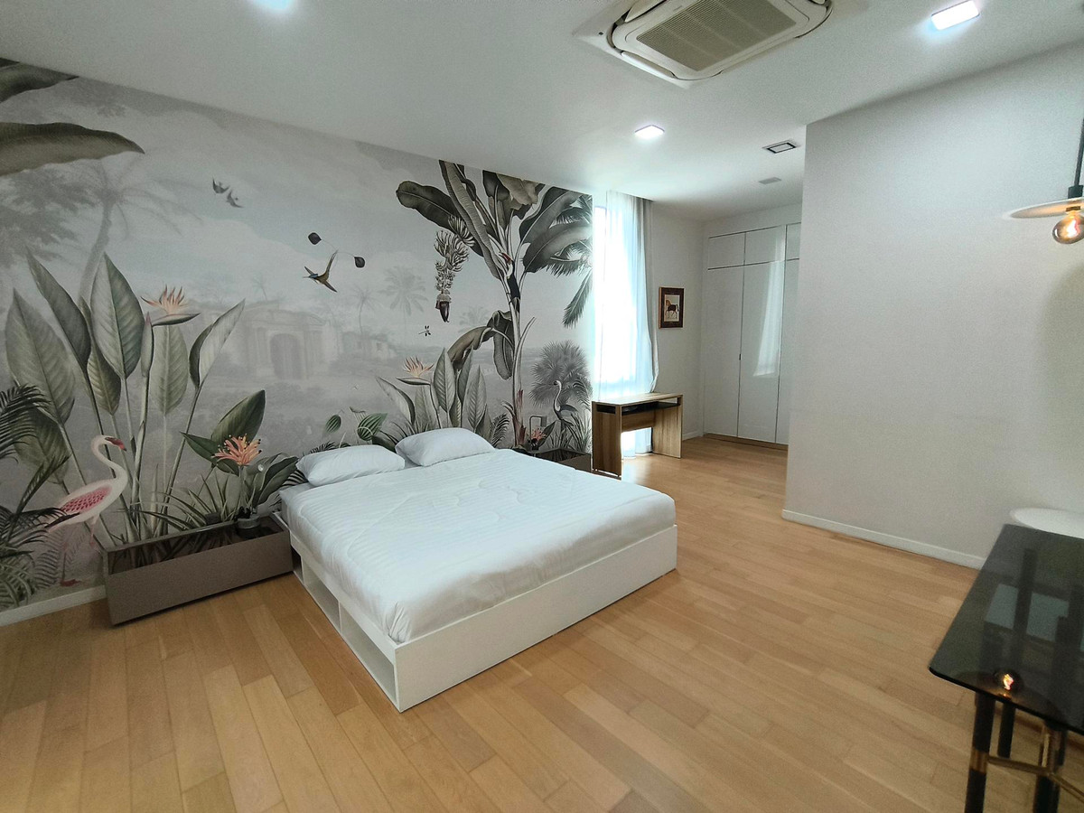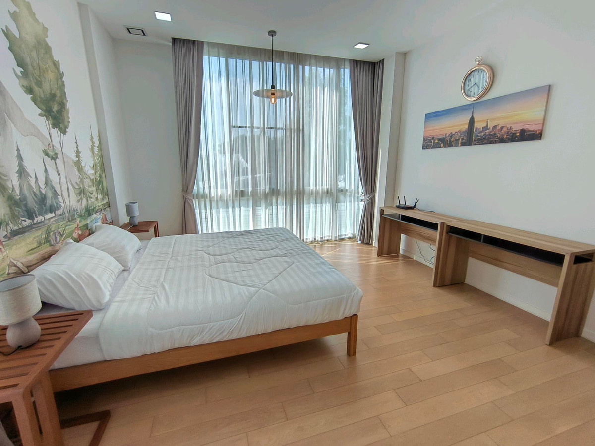 For rent, Vive Ekkamai-Ramintra , 3-story luxury house, corner unit , walk to Ekkamai, Thonglor, Huai Khwang, takes only a few minutes House details - 3-story house with private elevator - Land size 75 sq m - Usable area 420 sq m - 4 bedrooms (master room has Jacuzzi tub - 5 bathrooms - 1 maids room - 2 multi-purpose rooms - 3 parking spaces Rental price: 250,000 baht per month If interested, contact Bank Tel./id line : Contact number