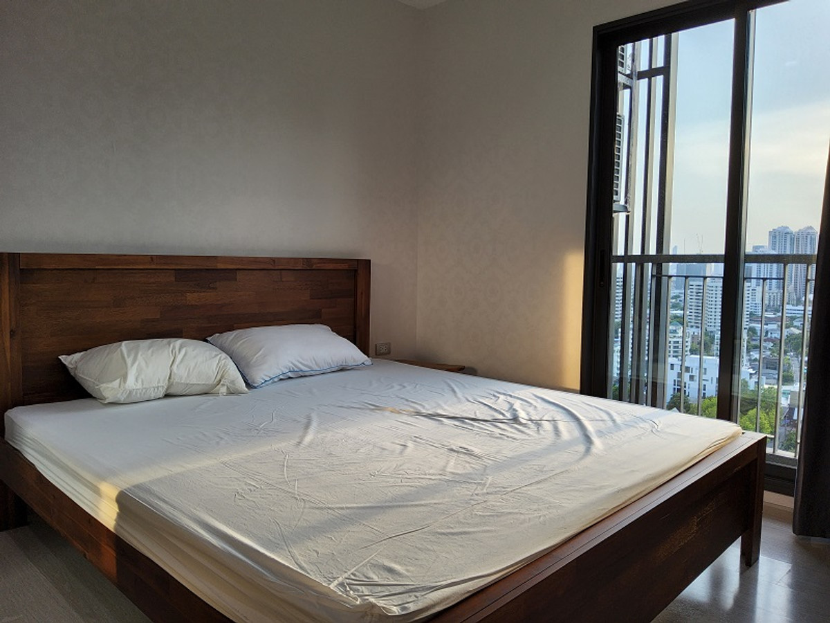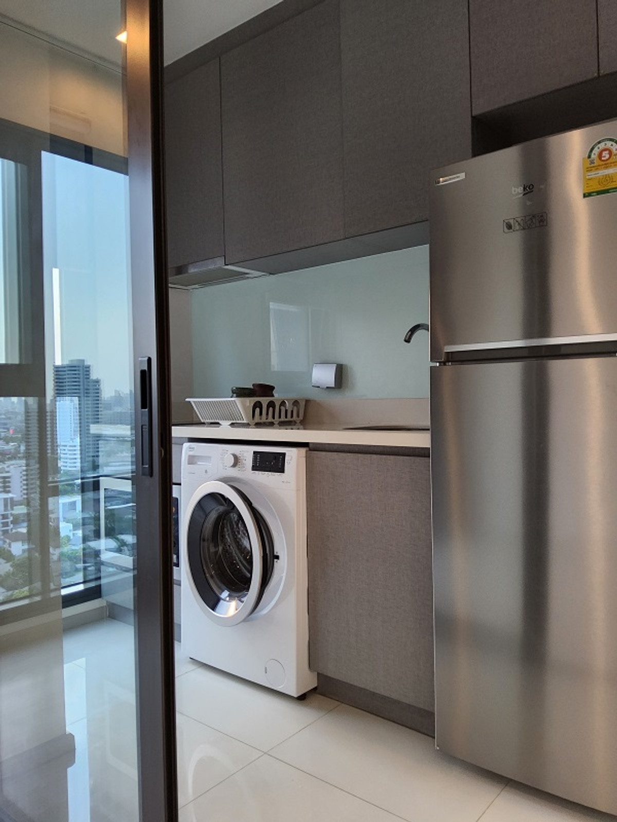 Rhythm Sukhumvit 36-38 near BTS Thonglor, area 33 square meters on the 21st floor + 1 bedroom, 1 bathroom, 2 TVs, 2 air conditioners, 1 living room, city view, no obstructed buildings + 1 kitchen, sto