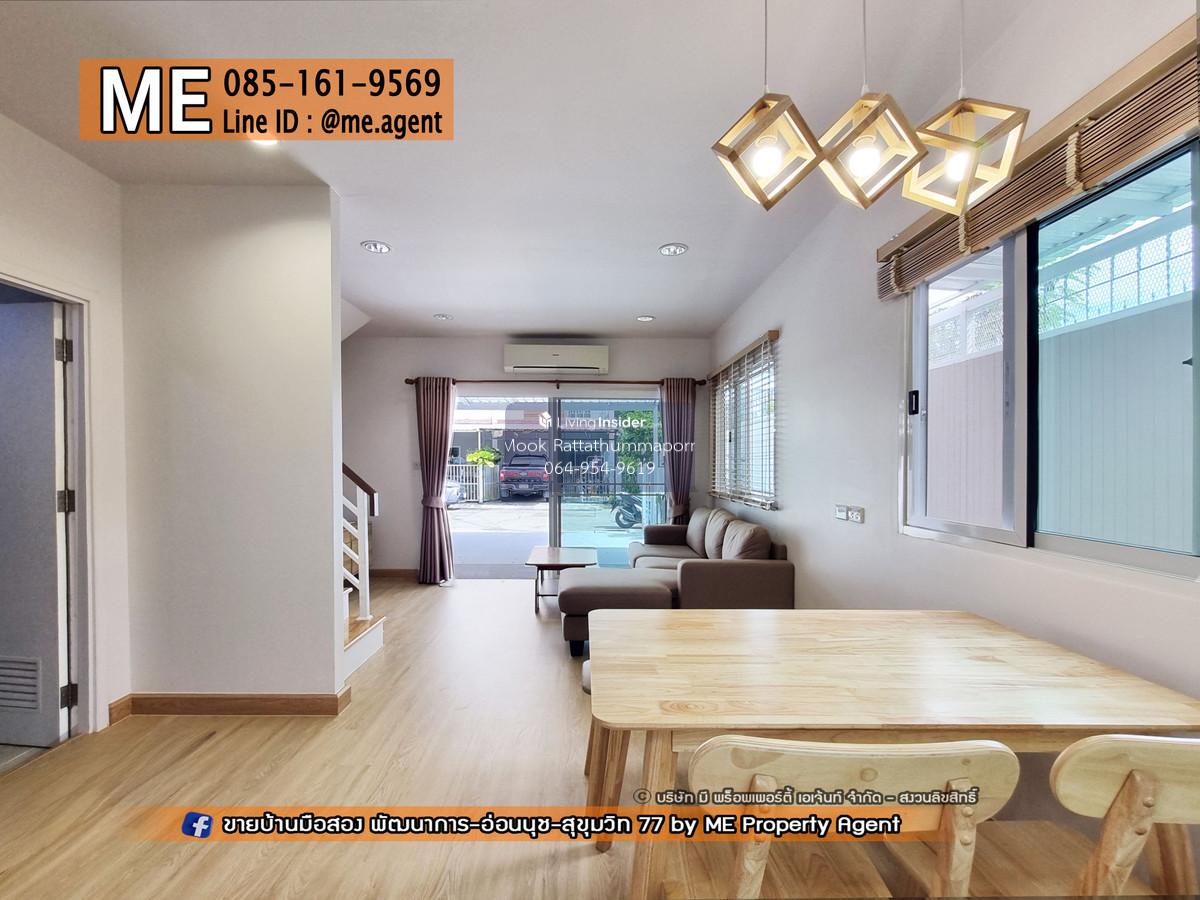 Townhouse for rent, Villette Light Pattanakarn 38, corner unit, newly decorated, good condition, ready to move in, near Ekkamai-Thonglor-Sukhumvit, call Contact number (RTG43-23) Good location, can enter and exit in many ways, including Soi On Nut 39, Srinakarin 24, Soi Phatthanakan 30,32,38,44 near BTS On Nut Station - near Airport Rail Link Hua Mak Station .Type: 2-story townhome [corner] Area: 23.4 sq m., usable area 125 sq m. Bedrooms: 3 Bathrooms: 2 Kitchen: 1 Garage: 2 cars Furniture: Ready to move in Just carry your bag in . Rent only 30,000 baht / per month Minimum contract 1 year // Deposit 2 months // Advance 1 month. If interested, contact us at ME Property Agent Call Contact number K.Mook (TH/ENG/JP)LINE : @me.agent IG : mepropertyagent TIKTOK : meagent YouTube : @meagent5131 Follow and see beautiful houses on the ME page. Inbox FB : Used houses for sale. Phatthanakan-On Nut-Sukhumvit 77 by ME Property Agent .Common area – Swimming pool size 15 x 5 meters / Fitness – Clubhouse / Security guard and CCTV 24 hrs. . Nearby places🪴1. Kasem Bundit University – 1.2 km. 2. Vibharam Hospital – 3.5 km. 3. Thanya Park – 4.0 km. 4. Airport Link Hua Mak – 3.5 km. 5. BTS On Nut – 5.5 km 6. Big C Extra On Nut – 5.0 km 7. Tesco Lotus On Nut – 5.5 km 8. Seacon Square – 7.5 km. 9. Paradise Park – 8.3 km . Nearby electric train - Yellow Line - Khlong Kelantan Station ( ≈ 1.6 km.) - MRT Yellow Line - Si Nuch Station ( ≈ 2.1 km.) - MRT Yellow Line - Hua Mak Station ( ≈ 2.2 km.) - Airport Link Logo Airport Link - Hua Mak ( ≈ 2.7 km.) - Yellow Line - Srinakarin 38 Station ( ≈ 3.1 km.) - BTS Sukhumvit Line - On Nut ( ≈ 3.3 km.)#MEpropertyagent #ONEStopService #second-hand house #Phatthanakan house #On Nut house #ready-to-move-in house #Townhouse On Nut #Townhouse Pattanakarn #Single house ready to move in #Single house #Phatthanakan 38 #Large single house #Near the BTS #VilletteLite #VilletteLite #Townhouse #Detached house for sale in Pattanakarn