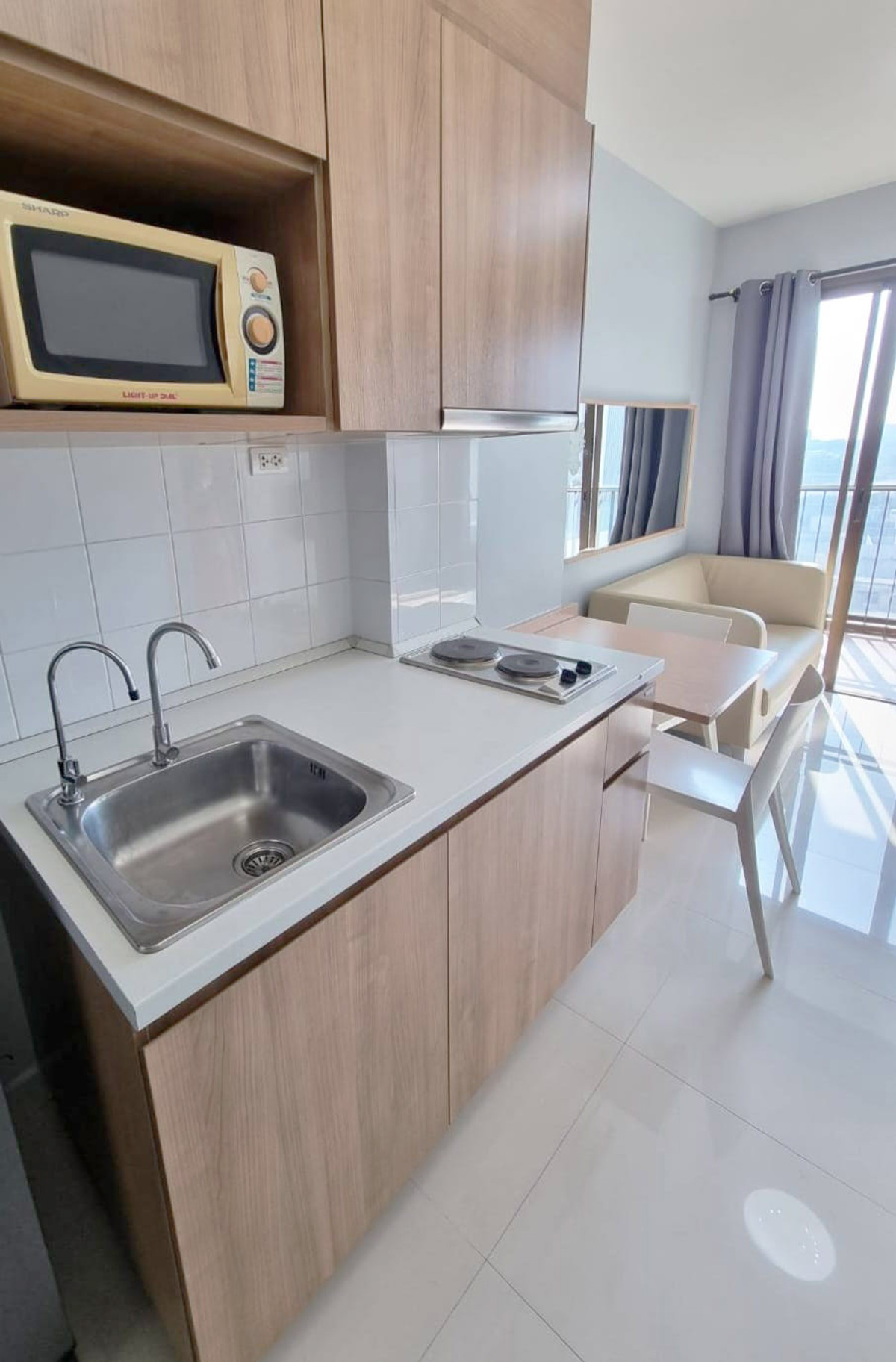 Ideo Mix Sukhumvit 103 fully furnished (near BTS Udomsuk, Udomsuk Market, True Digital Park) Rental price : 14,500 Baht/Month Building : B Location : Sukhumvit Rd. BTS (Green Line) nearby : Udomsuk (100 M.) Place nearby : Udomsuk Market // Makro FoodService Udomsuk // True Digital Park // Anglo Singapore International School // Kluaynamthai 2 Hospital // Expressway Details : - A beautiful unit size 30.5 Sq.m., 10th floor, 1 Bedroom, 1 Bathroom + bathtub, 1 Living room with built-in kitchen corner, Fully furnished and electric equipment (2 Air-conditioners, TV, Refrigerator, Microwave, Electric stove + Hood, Washing machine, Water heater), Facing South. - The high rise condo by Ananda Development on Sukhumvit Rd. (high 21 floor, 2 towers) just 100 M. to BTS station and Udomsuk Market, 500 M. to True Digital Park with facilities as Swimming Pool, Fitness, Garden, Roof Garden + Sky Bridge, Minimart, Laundry Room with Drinking Water Vending, Lobby, Elevator, Parking (1 Car/1 Room - non fixed), 24 hrs. Security Guard with CCTV and Access System. - Condition : 1 year contract // 2 months for security deposit + 1 month in advance (no pet allowed). Check for more units available or schedule for viewing please feel free to contact Contact number or Line ID : ibobcat