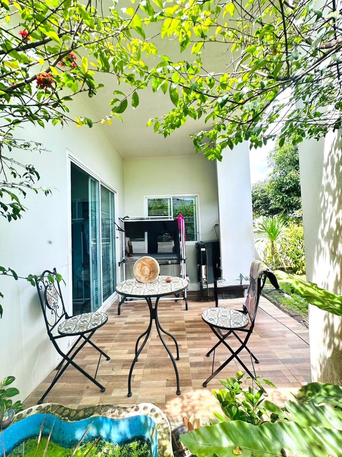 2-story townhome at the back 3 bedrooms 3 bathrooms 2 parking spaces 1 kitchen wide hall On an area of ​​54 square meters Theres some space left. Gardening/fish pond The project road is 10 meters wide