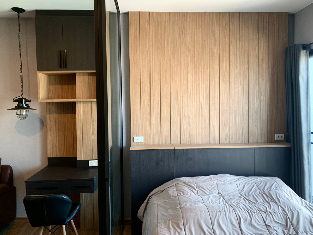 Rent 13,000 baht/month * 1 month advance deposit * 2 month damage insurance * 1 year rental contract * Pets and smoking not allowed Details : * Size 31.19 sq m / 1 bedroom, 1 bathroom * 23rd floor, north side, view of Rama 7, Chao Phraya River * Next to the room on the other side, next to the fire escape. Get privacy, quiet, away from the elevator, away from the garbage room, not hot room * Built in the whole room Room amenities : * TV (LG Smart TV 49 inches) * 2 air conditioners (Daikin) * Washing machine (LG 8 kg) * Refrigerator (Mitsubishi) * Water heater (Hitachi) * Microwave (Sharp) * Genuine leather sofa (Devano Sofa) * Mattress (Dunlopillo) * Wardrobe / shoe cabinet / storage cabinet (Built In) * Work desk / dressing table (Built In) * Digital Door Lock (Finger Scan) Project amenities : * Sky Lounge (41st floor) * Duplex Gym (Floor 40-41) * Infinity Edge Pool (Floor 40) * Kid Pool / Family Pool / Plunge Pool (Floor 6) * Sky Garden (Floor 6) * Playground * Club House - Golf Simulator Room - Kid Room - Yoga Room - Pool Room - Meeting Room - Reading Room - Multipurpose Room Other facilities : * 7-11 / Restaurant / Coffee shop / Beauty salon / Laundry shop / Coin-operated washing machine / Drinking water dispenser * 24 hours Security Guard * CCTV * Wi-Fi Service * Access Card Control * Passenger lift 6 / Service lift 2