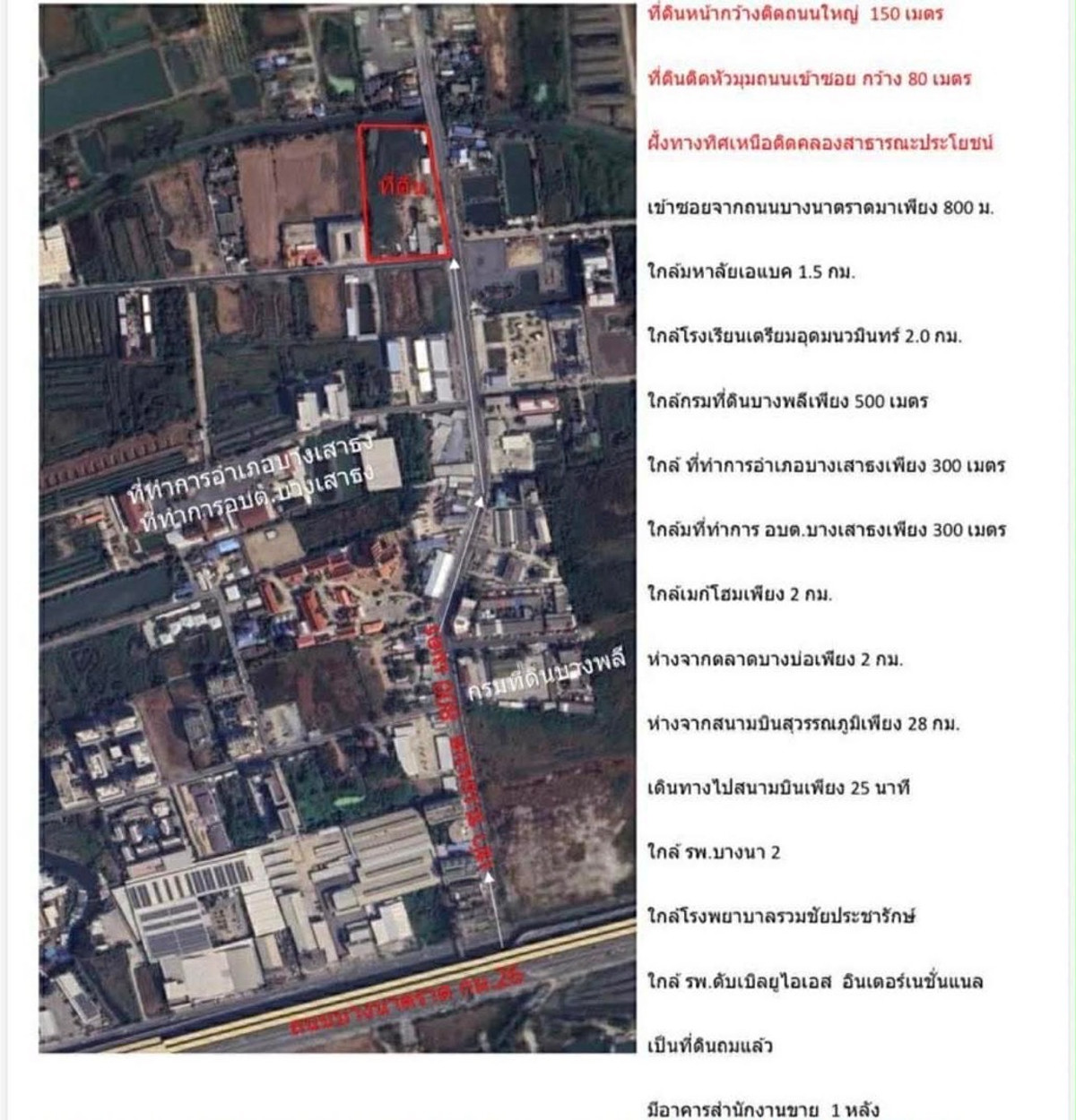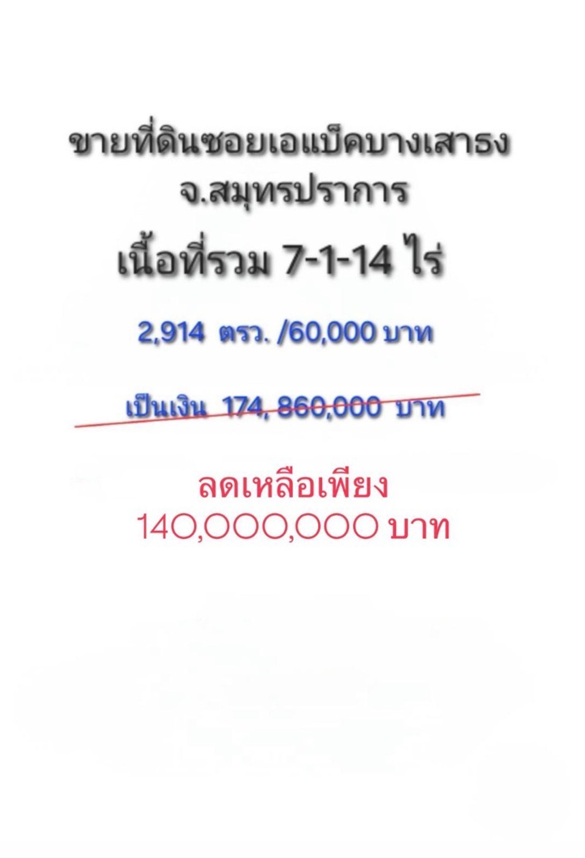 🚨🔥 ด่วน! โอกาสการลงทุน ที่ดินศักยภาพสูง ใกล้ ABAC บางเสาธง 🔥🚨 📍 ซอยเอแบคบางเสาธง | ถนนบางนา–ตราด กม.26 ที่ดินขนาดใหญ่ในทำเลที่เชื่อมต่อศูนย์กลางเศรษฐกิจและการเดินทาง เหมาะสำหรับ นักลงทุนไทยและต่างชาติที่กำลังมองหาที่ดินพร้อมพัฒนา สามารถต่อยอดเป็นโครงการเชิงพาณิชย์และเพิ่มมูลค่าในระยะยาว 📐 ขนาดที่ดิน 7ไร่1งาน14ตารางวา รวม2,914 ตารางวา (ที่มีโฉนด) ✔ หน้ากว้างติดถนนใหญ่กว่า 150 เมตร เพิ่มภาพลักษณ์และมูลค่าโครงการ ✔ ลักษณะหัวมุม รถบรรทุกและคอนเทนเนอร์เข้าออกสะดวก ✔ ที่ดินถมแล้ว เริ่มพัฒนาได้ทันที ลดเวลาและต้นทุน ✔ มีอาคารสำนักงาน 1 หลัง ใช้งานต่อได้ทันที ✔ ใกล้ Assumption University (ABAC) แหล่งบุคลากรและชุมชนนานาชาติ ✔ เชื่อมต่อถนนบางนา–ตราด มอเตอร์เวย์ และพื้นที่ EEC ✔ เดินทางถึง สนามบินสุวรรณภูมิ ประมาณ 25 นาที เหมาะสำหรับ คลังสินค้า | โลจิสติกส์ | โรงงาน | โชว์รูม | สำนักงาน | โครงการเชิงพาณิชย์ 💰 ราคาขาย 140,000,000 บาท (ต่อรองได้) 📸 ขอภาพเพิ่มเติม แผนที่ และรายละเอียดเชิงลึกได้ โทร : Contact number ID : Kamkaew_310845 Wechat ID : wxid_wooc9hws8awp12 WhatsApp : Contact number 📍 สามารถนัดชมสถานที่จริงได้ทันที (เจ้าของขายเองค่ะ) Map✨ https://maps.app.goo.gl/yU6zSSbGo3en53Ur5