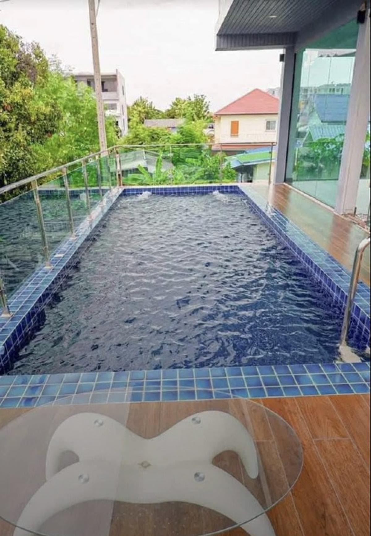 Urgent sale detached house in Ratcha Lat Phrao-Wang Hin area. Lat Phrao behind the corner Land area 51 sq m. 3 floors Usable area 380 sq m. House age 8 years Front of the house faces east *** Suitable for a home office *** House for rent, Pool Villa. ***The house is good to live in * 4 bedrooms * 6 bathrooms * 2 halls * 2 kitchens * 1 swimming pool (the pool is on the 2nd floor balcony of the house) * 2 storage rooms * 1 water pump room * can park 3 cars in the house * can park 2 cars in front of the house * front door 3.3 m. high) (Old teak wood) * Bedroom door height 2.7 m. (Old teak wood) * Road in front of the house is 8 m wide Nearby places - Near the expressway (Ramindra-At Narong) - Near the shortcut to Ratchada. (in front of the court) - Yellow Line MRT - near Central East View Department Store - near Makro, Lotus, CDC., Crystal Park - Paolo Chokchai 4 Hospital - near Lat Phrao Post Office Selling price 12,000,000฿ Discount from 16mb - Tax+transfer Half each If interested, inquire Contact number Call directly only Agent post