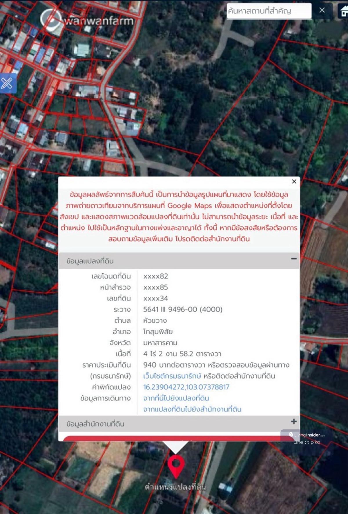 ขายที่ดิน 4ไร่ 2งาน 58.2ตรว. ตำบล หัวขวาง อำเภอ โกสุมพิสัย จังหวัด มหาสารคาม สถานที่ใกล้เคียง : ห่างถนน หมายเลข 208 เพียง 850ม. มีดีฟาร์มคาเฟ่ 500ม. บึงกุยรีสอร์ท 950ม. โรงเรียนโกสุมวิทยาสวรรค์ 1.3 กม