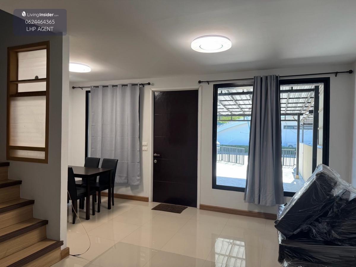 Urbano Village Soi Ramkhamhaeng 94 Wide front townhouse. Size 119 sq m. 3 bedrooms 2 bathrooms 16,000 per month 1 year contract 2 month deposit 1 month rent in advance 3 air conditioners Built in cabinet, 2 beds, sofa 4 seat dining table No one in front of the house. Located across from the garden can park 4 cars in the house. Enter and exit the village with a key card There is a fitness center in the village Does not accept pets. Not registering a company Not accepting foreigners