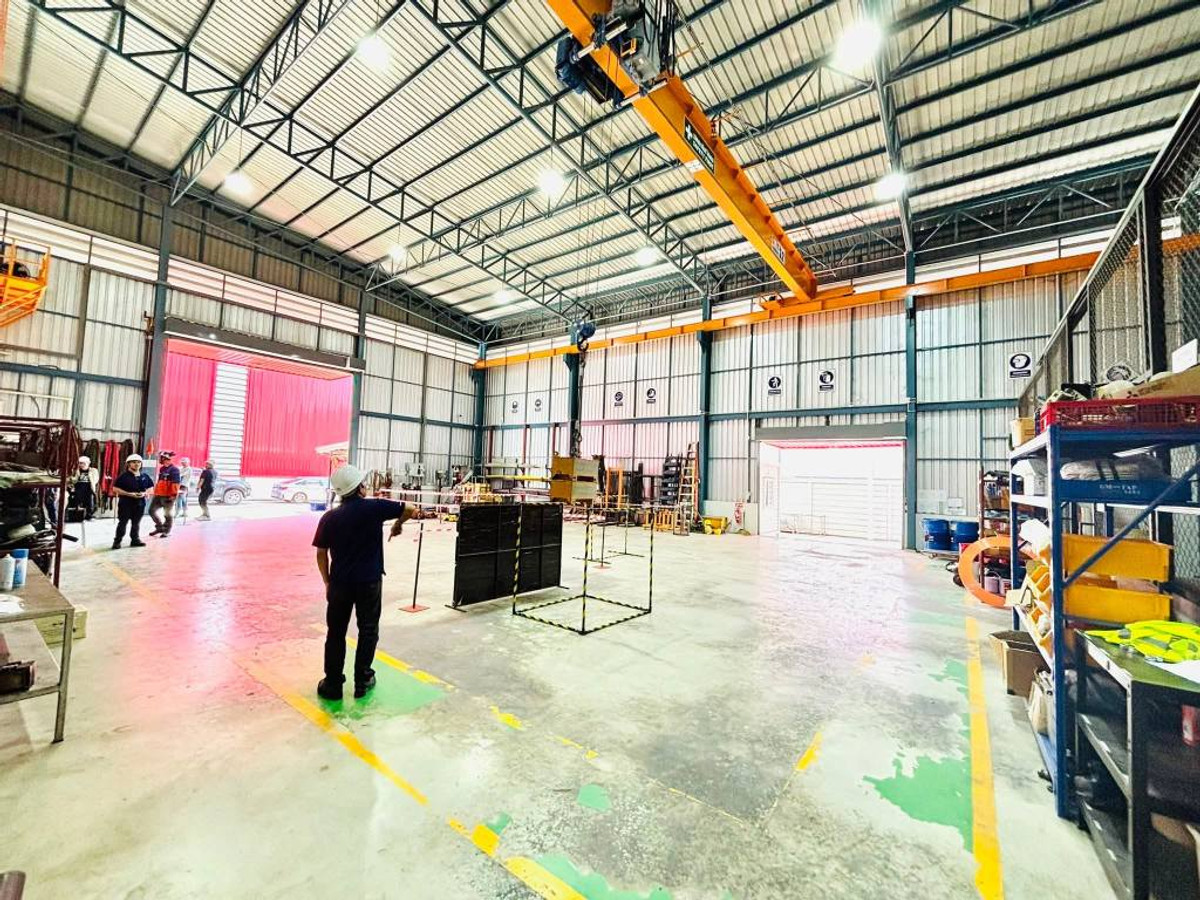 For Sales 🏗 Factory, Office & Showroom (2 Buildings) 📏 Land area: 2.5 Rai | Usable area: 1,688 sq.m. 📍 Watthana Factory Project, Phanthai Norasing, Samut Sakhon -------------------------------------- . ➡️ Code FS421 ⬅️ -------------------------------------- . ✅ Selling price 45,000,000 baht ✅ (all transfer fee is half) -------------------------------------- . 📌Details: • Factory built 3 years ago; modern design, beautifully finished, very well maintained • Land: 2.5 Rai | Usable area: 1,668 sq.m. • Green zoning • Factory license (Ror. Ngor. 4) can be applied for • 30 kW on-grid solar system installed on the office area (1 year old, fully licensed) supplying power to both buildings, reducing electricity costs by approx. 70% • 160 KVA transformer with 3-phase electricity throughout the premises • Fully built-in interiors with complete furniture (Modernform brand + workstations) and all air conditioners included; large central A/C for the showroom and industrial ceiling fans • CCTV system covering the entire factory area and complete communication systems -------------------------------------- . 🏗 Factory Building Details: • Single-storey factory, size 24 x 34 m, usable area 816 sq.m., ceiling height 10 m • 2 Overhead Cranes: 10-ton (double girder) x 1, 5-ton (single girder) x 1 (European brand hoists) • Steel mezzanine storage floor • Production area (steel fabrication) with pile foundation, load capacity up to 5 tons/sq.m. • Concrete paving around the entire building • Front access suitable for trailer trucks; project road width 12 m -------------------------------------- . 📦 Warehouse / Office / Showroom Building Details: • 2-storey building, size 25 x 34 m, usable area 852 sq.m. • Passenger lift serving both floors • 1 Overhead Crane, 3.2 tons (single girder) 》Ground Floor: • Spacious product showroom with office area partitioned into 2 large offices, fully furnished (like new) • 4 restrooms inside the showroom (separate male/female) • 4 external staff restrooms • Showroom includes a café and co-working space, beautifully designed to welcome clients • Large open-plan warehouse/storage area with 3.2-ton overhead crane 》Second Floor: • Access by passenger lift • 1 office room and 2 meeting rooms (1 small, 1 large) -------------------------------------- . For further info, please contact: OIL📞 Contact number (AG) 📱Line id: ooil1312 NAM📞 Contact number (AG) 📱Line id: alin_2428