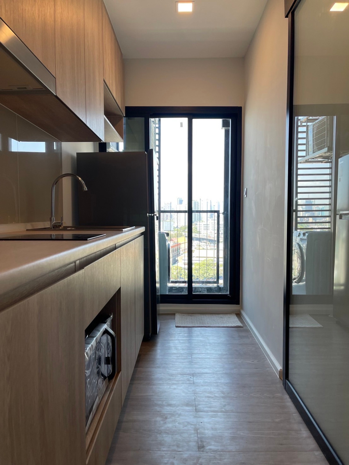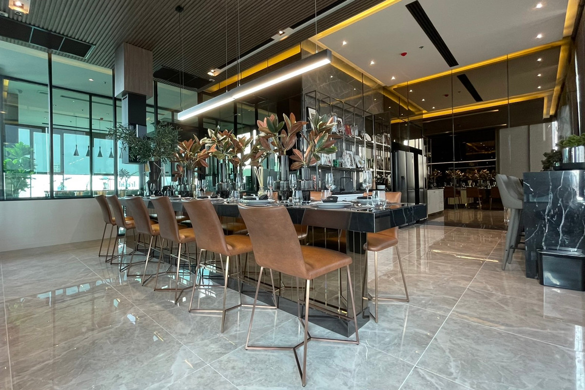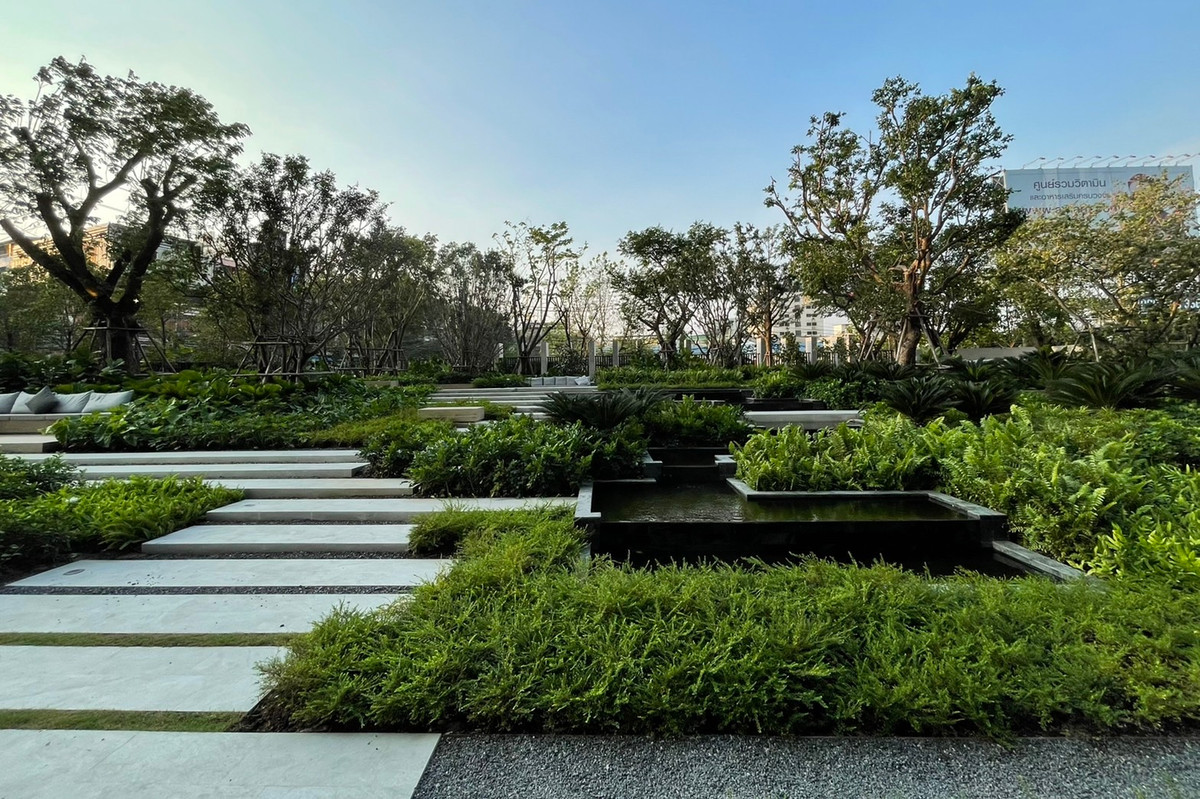 Modiz Sukhumwit 50 Building A, 14th floor 1 bedroom exclusive room Balcony facing north List of furniture - Shoe cabinet - TV cabinet - Wardrobe - Kitchen set - Sofa that can be turned into a bed - Dining table - Bed - Bedding set List of electrical appliances - TV 50" - 2 air conditioners - Microwave - Electric stove - Refrigerator - Washing machine/dryer - Water heater - Built-in speaker - Digital door lock Facilities 5 floors 1st floor Outside the building: Natural Retreat, garden larger than 1 rai / Repose Deck 1st floor Inside the building: Lobby Lounge A / Lobby Lounge B / Lobby Lounge C / Auto Parking / Lounge / Laundry / Meeting Room 8th Floor: Co-Working & Co-Living Lounge / Co-Dining & Sky Bar / Playroom / Theater / Kids Room 25th Floor: Kids Pool / Lap Pool / Panoramic Fitness / Yoga Area / Rooftop Blue Jacuzzi / Private Onsen & Spa Room Rooftop floor : Panoramic Observation Deck / Moon Terrace