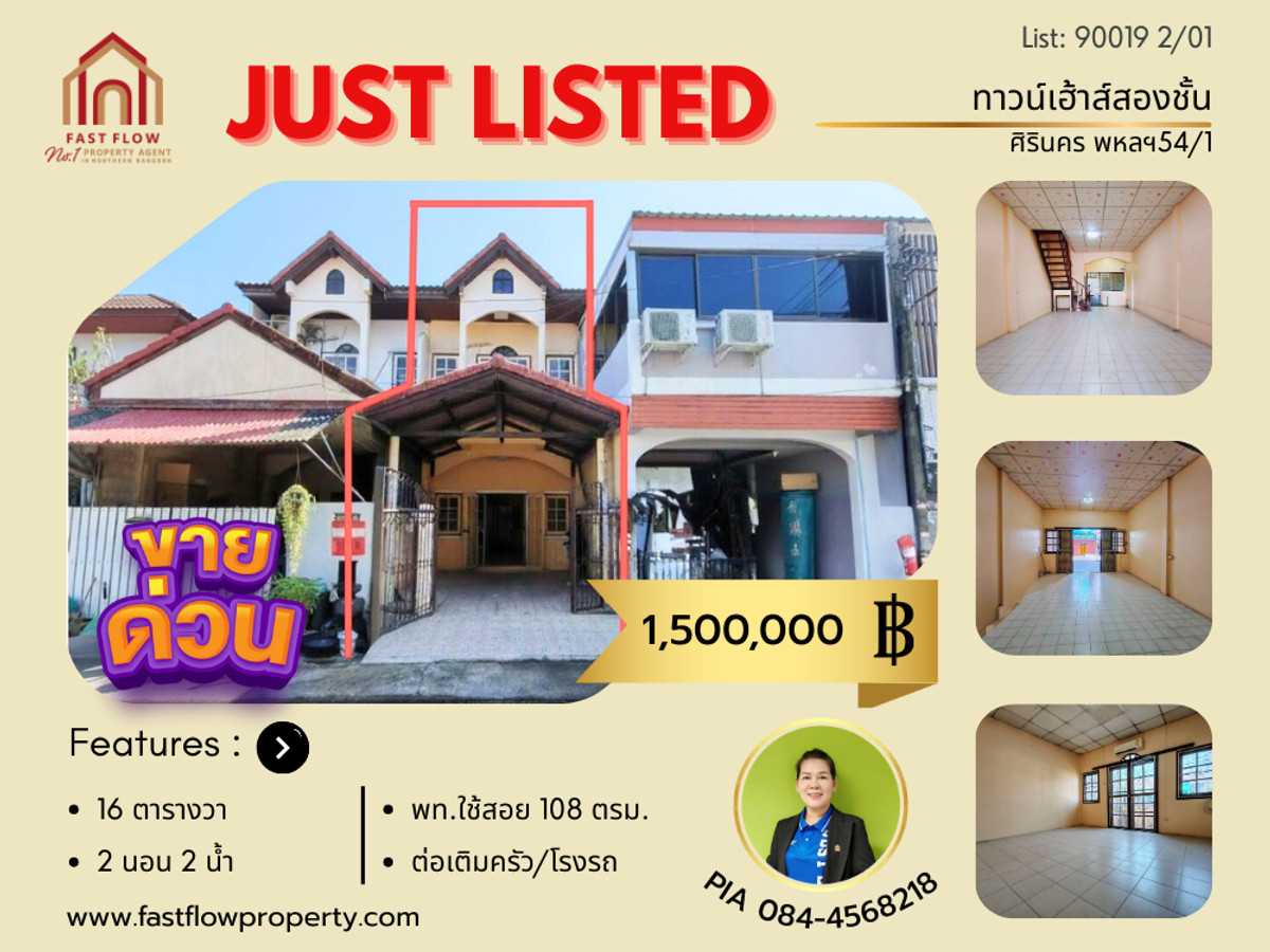 Townhouse for sale, Sirinakhon Village, Phaholyothin 54/1 Road. Townhome in Saphan Mai, Sai Mai, Lam Luk Ka, Hathairat, Chanthanubeksa area. Garage and kitchen extensions included. PIA. Contact: Warin (Pia) Contact number Line ID: Contact number Listing no: 90019 Property Detail: - 2-story townhouse for sale, Sirinakhon Village, Phaholyothin 54/1 Road - Land area: 16 square wah - Usable area: 108 square meters (including kitchen and garage extensions) - House faces northwest - 2 bedrooms, 2 bathrooms - Tiled floors on both levels - Tiled garage - House sold as is, easy to renovate and extend Project and Facilities: – Sirinakhon Project Developed by Sirimahanakorn Co., Ltd. Nearby Amenities: – BTS Green Line, KPO Station, BTS Khuk Khot Station – Close to Sukhumvit 5 - Dao Khanong - Bang Na - Bang Pa In Expressway – Big C Saphan Mai, Lotus Laksi, Central Ramintra – Ying Charoen Market, Ying Charoen Plaza – Bhumibol Hospital, Rangsit Medical Hospital, Chulabhorn Hospital, CGH Phahonyothin, B-Care Hospital – Rattanakosin Somphot Bangkhen School, Thai Niyom Songkhro School, Rittiyawanlai School – Phra Nakhon Rajabhat University, Sri Patum University, North University, Krirk University, Siam Business Administration College (SBAC) Saphan Mai – Royal Thai Air Force, Don Mueang Airport Location: https://maps.app.goo.gl/Gti5Wbp6K9uiJt1m7 Price: 1,500,000 THB Free bank loan assistance service! Viewing appointments are available every day. Prices are negotiable. Contact: Warin (Pia) Contact number Line ID: Contact number Contact Fast Flow Property Office Tel: Contact number Line ID: @fastflow FB page: facebook.com/fastflowproperty www.fastflowproperty.com We offer free advertising for all types of real estate sales and listings.