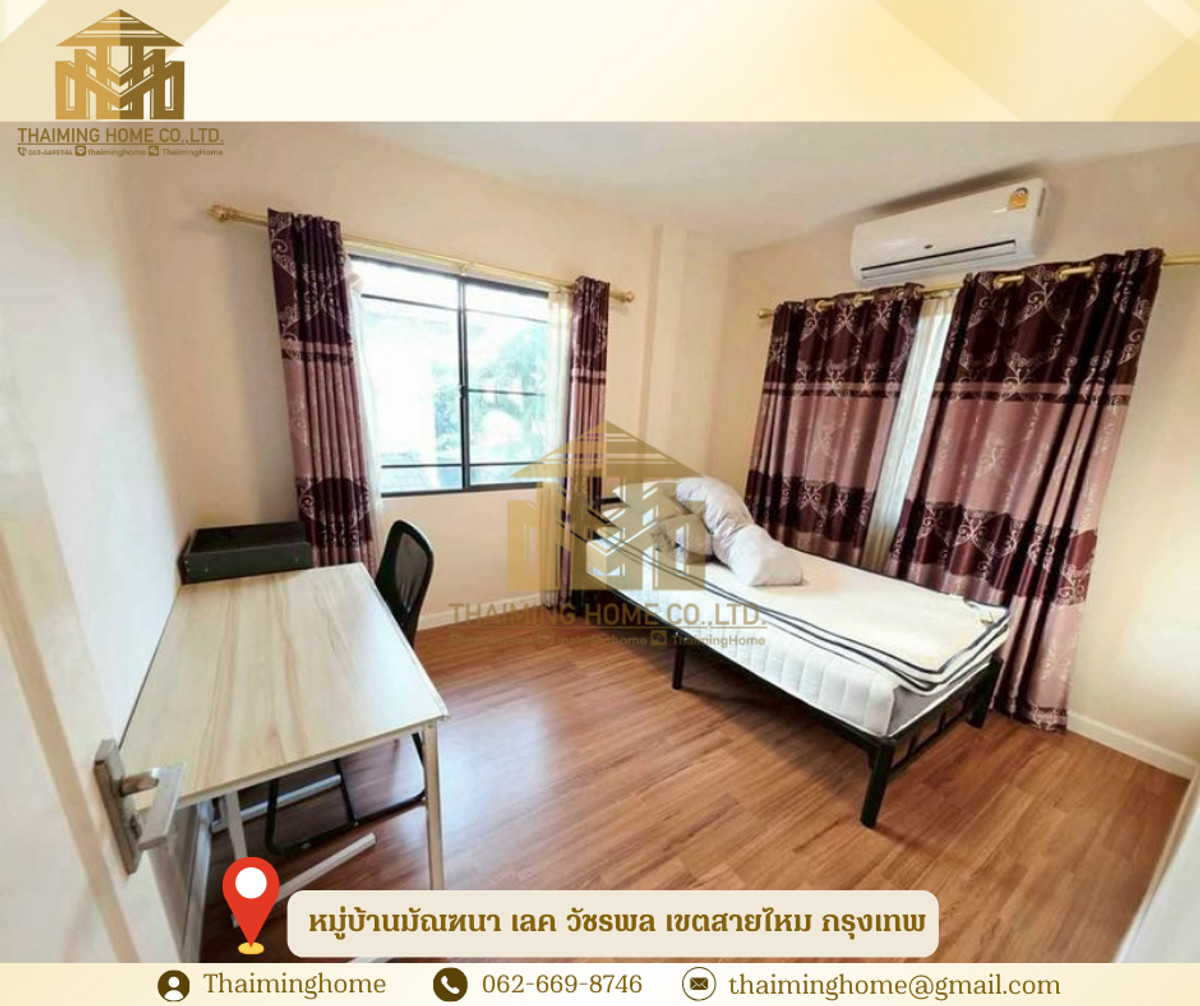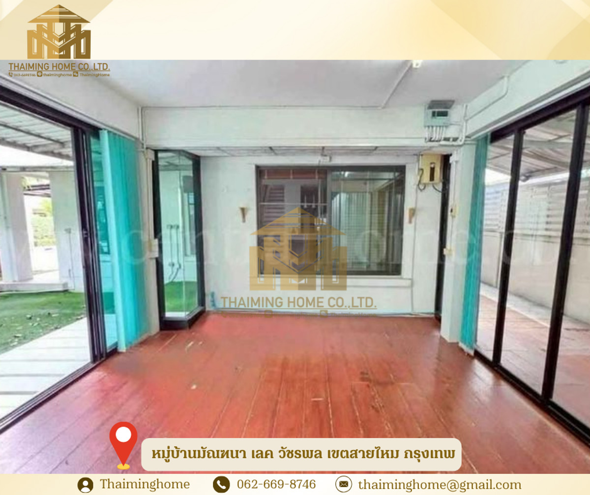 House for Rent/Sale, Mandana Lake Watcharapol Village, Sai Mai District, Bangkok (Property Code TH4-390126) Details: - 300 sq.m. usable area - Pets allowed - 6 bedrooms, 3 bathrooms - 1 fitness room - 1 prefabricated house - 2 kitchens - Parking for 2 cars in front of the house - 7 air conditioners - 3 water heaters - 1 TV - 1 sofa set - Remote controlled gate - Burglar alarm system Amenities - Large swimming pool with jacuzzi area - Sauna - Steam room - Kid's club - Fitness center - 2 playground areas - Basketball court - Exercise area - 1 km around the lake Nearby Places - Expressway - Don Mueang Airport - Sai Mai Avenue - Foodland - Avenue 56 - Sarasas Witaed Sai Mai School - Big C Sukhaphiban 5 - Big C Sai Mai Terms of Sale/Rent - Sale price: 9.9 million baht - Minimum contract: 1 year - Security deposit: 2 months - Advance payment: 1 month - Rent: 65,000 baht per month -------------------------------------- บริษัท ไทยหมิง โฮม จำกัด Thaiming Home Co.,Ltd. 泰明房园 房产公司 ----------------------- Contact ติดต่อ : Contact number Contact : Contact number คุณหมิง(中文) Line ID: thaiminghome Line ID: @thaiminghome https://lin.ee/PkkHwYv Wechat : ThaimingHome E-mail : Contact email -----------------------