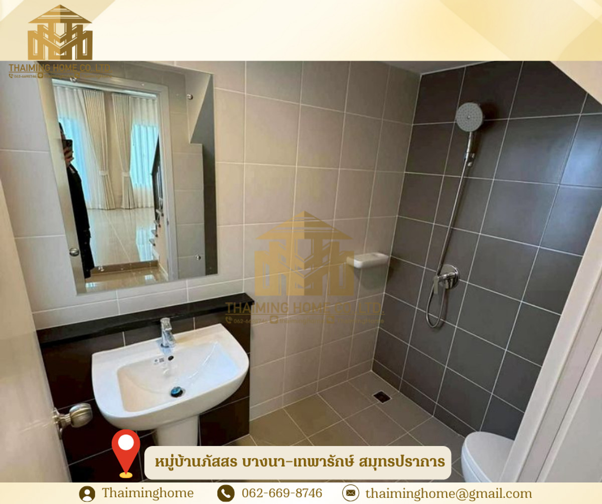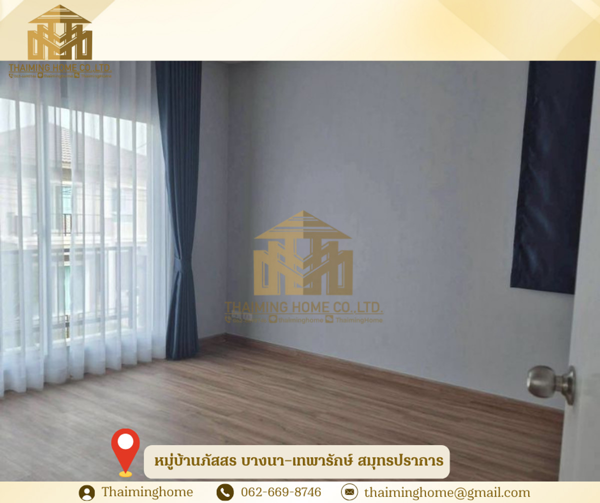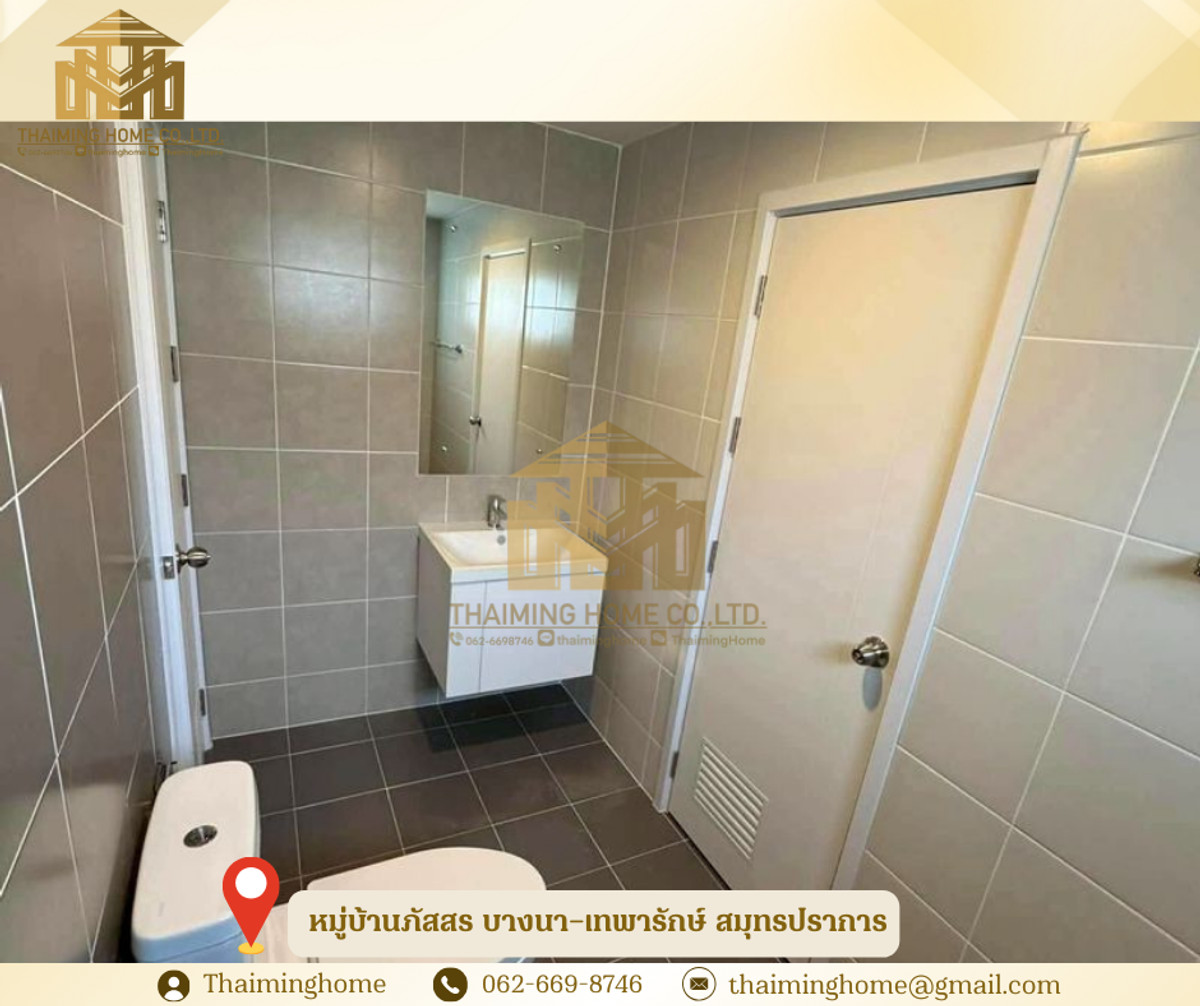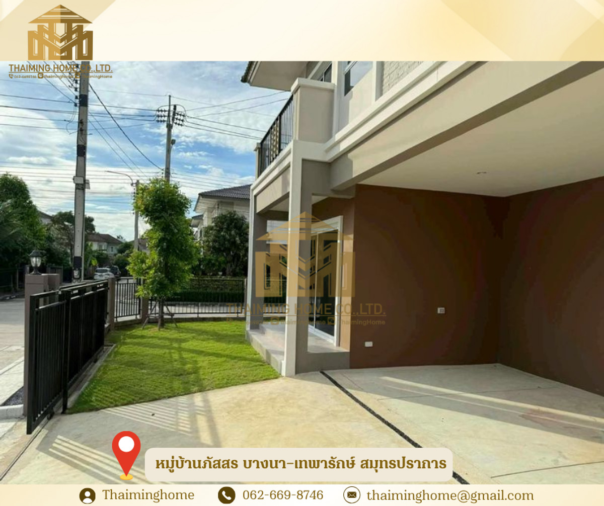 New house for rent, Passorn Bangna-Theparak Village, Samut Prakan (Property Code TH4-410126) Details - Usable area 133 sq.m. - 2-story detached house – Brand new - 3 bedrooms - 2 bathrooms - 1 living room - 1 dining room - 1 kitchen with range hood - 1 built-in wardrobe - 3 air conditioners - Curtains throughout the house - Integrated garage for 2 cars - Secure village with 24-hour security guards - Ready to move in – New, clean house, never been occupied. Nearby Amenities: - Mega Bangna - Hospitals, etc. - Schools, etc. - Bang Pu Industrial Estate Rental Conditions: - Minimum contract 1-3 years - 2 months security deposit - 1 month advance payment - 1-year contract: 30,000 THB/month - 3-year contract: 25,000 THB/month -------------------------------------- บริษัท ไทยหมิง โฮม จำกัด Thaiming Home Co.,Ltd. 泰明房园 房产公司 ----------------------- Contact ติดต่อ : Contact number Contact : Contact number คุณหมิง(中文) Line ID: thaiminghome Line ID: @thaiminghome https://lin.ee/PkkHwYv Wechat : ThaimingHome E-mail : Contact email -----------------------