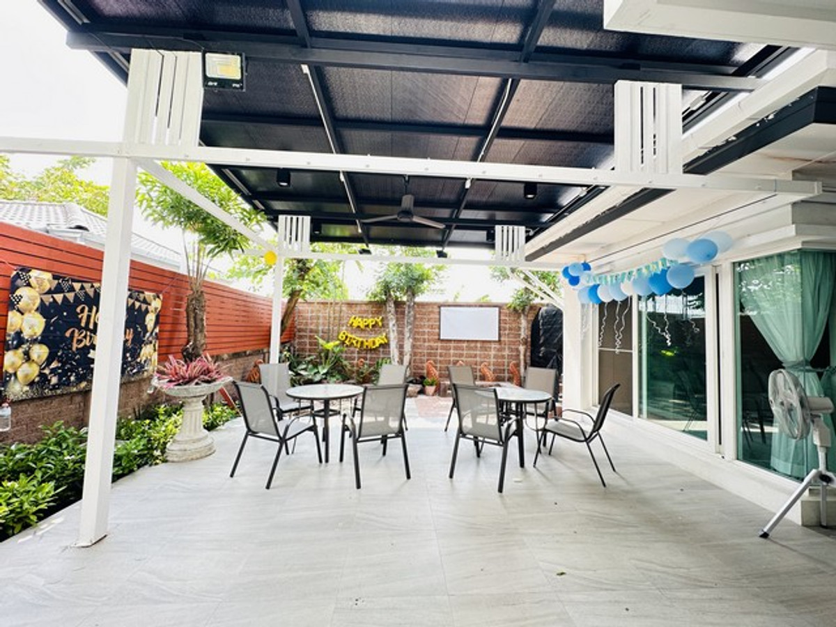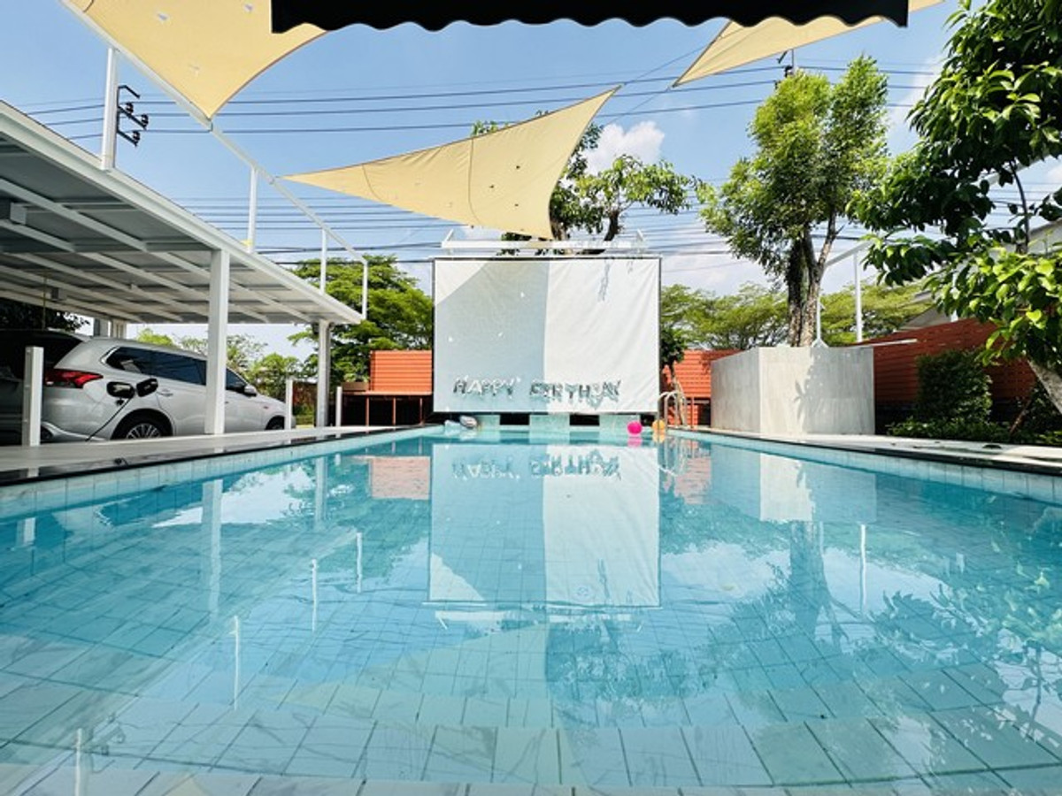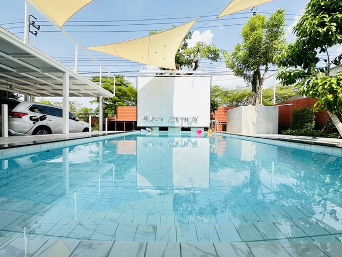 Code C7011, 2-story detached house for rent, Wararom Premium Village, Watcharapol-Chatuchot. With private swimming pool **For rent** Rental price 250,000 baht/month (2 insurance in advance 1) Tel : Contact number Kit Line id : candy.456 Line Add Friend : https://line.me/ti/p/rHhjrvhm_z 2-storey detached house, Wararom Village Premium. Watcharaphon-Chatuchot With private swimming pool Area 150 square meters, usable area 800 square meters 5 bedrooms 4 bathrooms 2 kitchens (Thai kitchen/Western kitchen) 1 Maids room + maids bathroom , parking for 4 cars (with electric car charger) - House with swimming pool, can hold a #poolside party. (Swimming pool size 4x10 meters) - There is a karaoke room with a large screen TV - The house is fully furnished. Ready to move in - Accepting Thais - Accepting foreigners Good location, convenient travel. Near the expressway connecting many routes Rental price 250,000 baht/month (2 insurance in advance 1) Location: Soi Chatuchot, Or Ngoen Subdistrict, Sai Mai District, Bangkok 10220 https://maps.app.goo.gl/Zt33MjqNBbMcqawE9