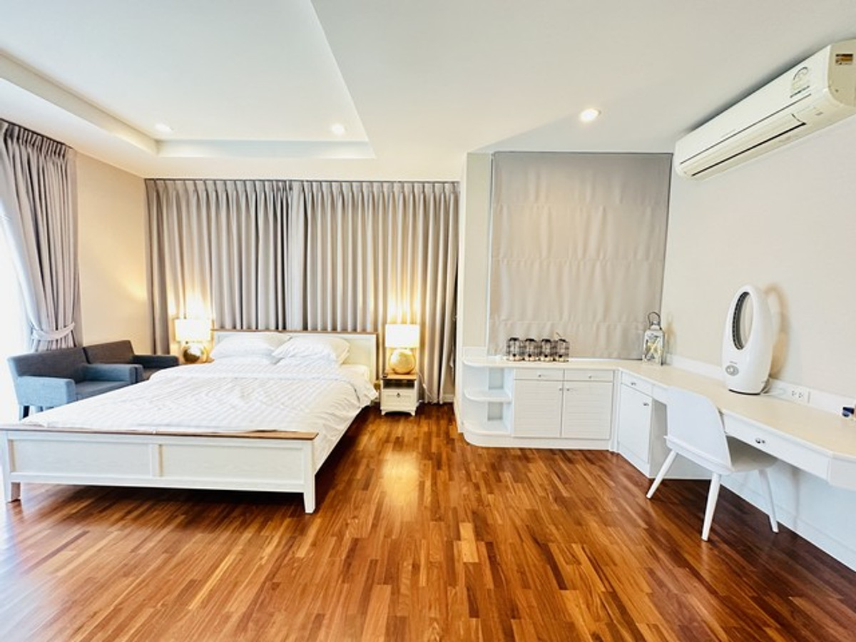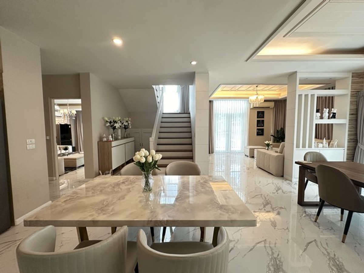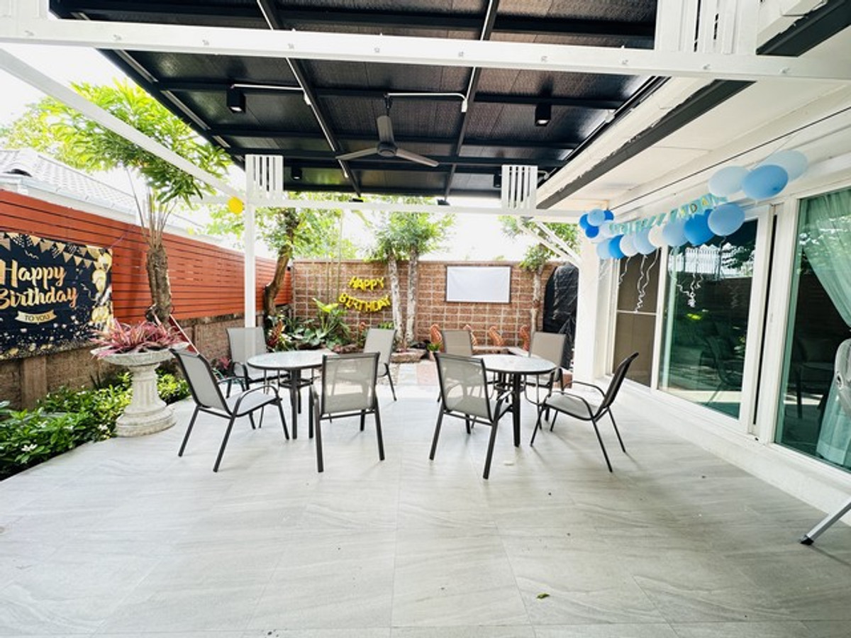 Code C7011, 2-story detached house for rent, Wararom Premium Village, Watcharapol-Chatuchot. With private swimming pool **For rent** Rental price 250,000 baht/month (2 insurance in advance 1) Tel : Contact number Kit Line id : candy.456 Line Add Friend : https://line.me/ti/p/rHhjrvhm_z 2-storey detached house, Wararom Village Premium. Watcharaphon-Chatuchot With private swimming pool Area 150 square meters, usable area 800 square meters 5 bedrooms 4 bathrooms 2 kitchens (Thai kitchen/Western kitchen) 1 Maids room + maids bathroom , parking for 4 cars (with electric car charger) - House with swimming pool, can hold a #poolside party. (Swimming pool size 4x10 meters) - There is a karaoke room with a large screen TV - The house is fully furnished. Ready to move in - Accepting Thais - Accepting foreigners Good location, convenient travel. Near the expressway connecting many routes Rental price 250,000 baht/month (2 insurance in advance 1) Location: Soi Chatuchot, Or Ngoen Subdistrict, Sai Mai District, Bangkok 10220 https://maps.app.goo.gl/Zt33MjqNBbMcqawE9