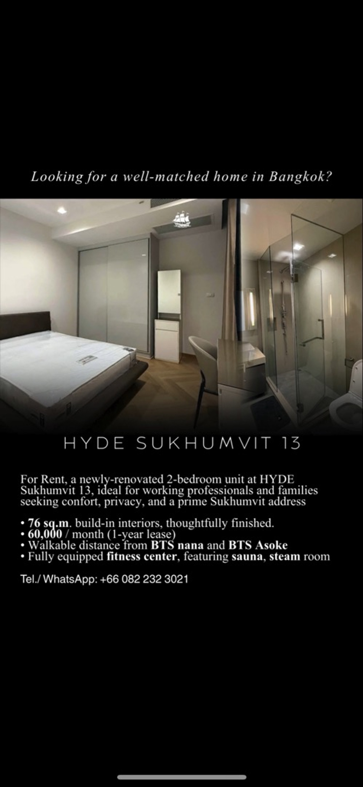 HYDE Sukhumvit 13 — 2-Bedroom for Rent | THB 60,000/month Curated by The Private Address A well-designed 2-bedroom residence at HYDE Sukhumvit 13, ideal for working professionals and families seeking comfort, privacy, and a prime Sukhumvit address. WhatsApp/ tel: Contact numberLine ID: Atittaya.