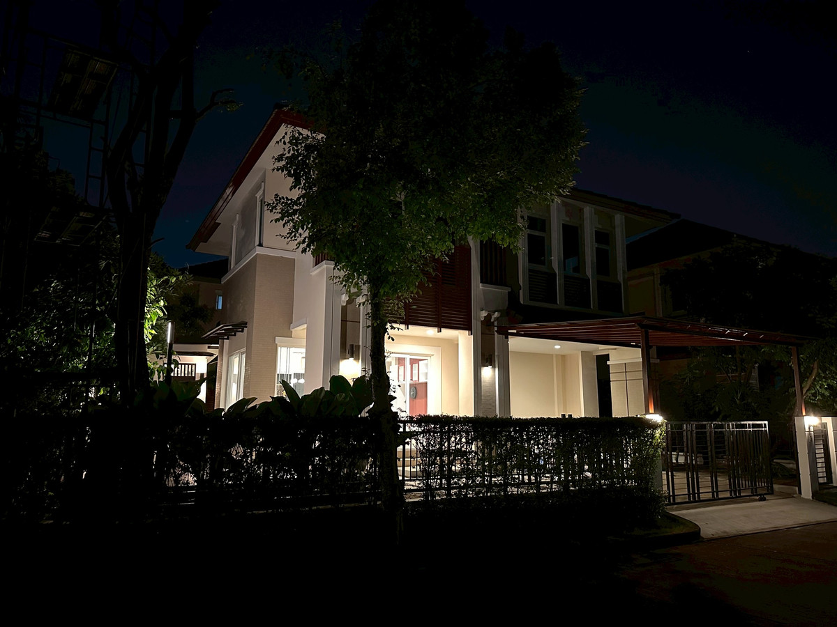 Corner detached house for sale Facing north, newly renovated Exterior decoration in vacation home style (Tropical Style) Built-in furniture throughout the house with heat protection system. 🏡 Highlights of the house • Single detached house, corner house, facing north, not too strong sun, comfortable to live in. • Decorated outside in Tropical style, giving the feel of a vacation home. • Arrange a garden around the house. Add shade and privacy • Add a separate small house with a terrace for relaxing. • Built-in Furniture throughout the house, ready for use. • Recently renovated, very good condition. 🌬 Heat protection system • The roof is sprayed with foam insulation. ▸ Helps reduce heat buildup inside the home. ▸ The house is cooler, saving energy from the air conditioner. 🏠 Internal functions • There is a separate small house. ▸ Built-in multi-purpose room ▸ With en-suite bathroom • Master bedroom with Walk-in Closet (Built-in) • Air conditioning in every room. • Add a washing area. • There is an outside bathroom. 🚗 Parking • Parking for 2 cars. • Add a rain roof. • The parking lot has been tiled. 🏊♂️ Facilities in the project • Swimming pool • ฟิตเนส • 24 hour security system 📍 Potential location Near the Lifestyles area on the Ratchaphruek side: • Central WestVille • The Crystal SB Ratchapruek • The Walk Ratchapruek Beautiful house ready to move in Located in a quality project, cool house, energy saving, good atmosphere. 📞 If interested, contact / make an appointment to view the house. Contact number