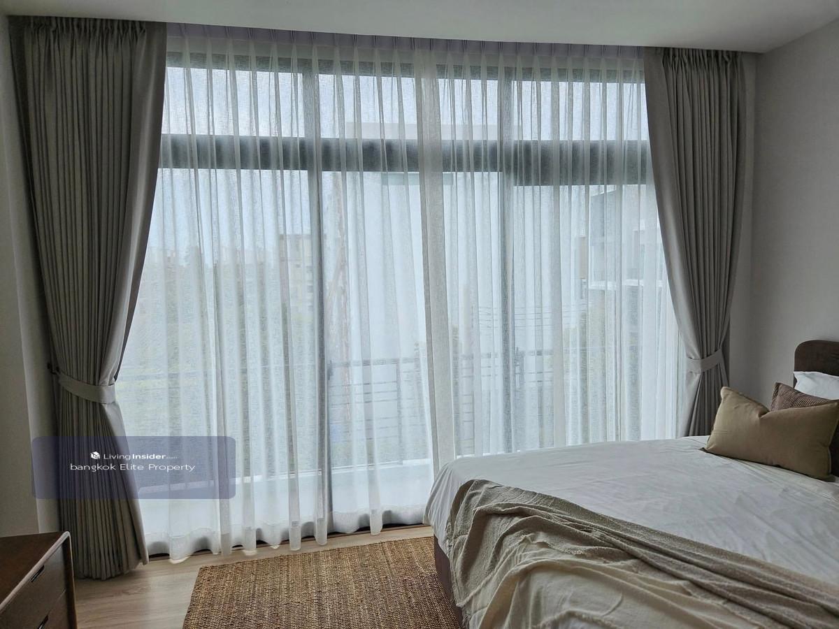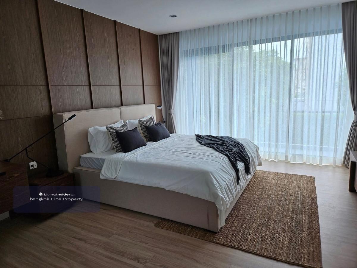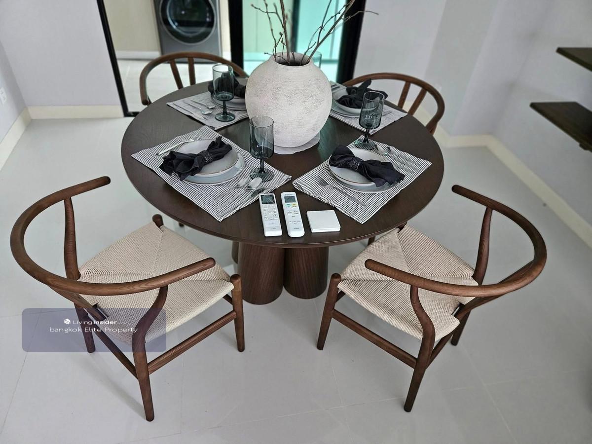 For rent Nirvana Define Krungthep Kreetha, 3 floors, edge plot has garden area. Close to international schools and Community mall Fully furnished, luxuriously decorated Modern design High ceilings Nat