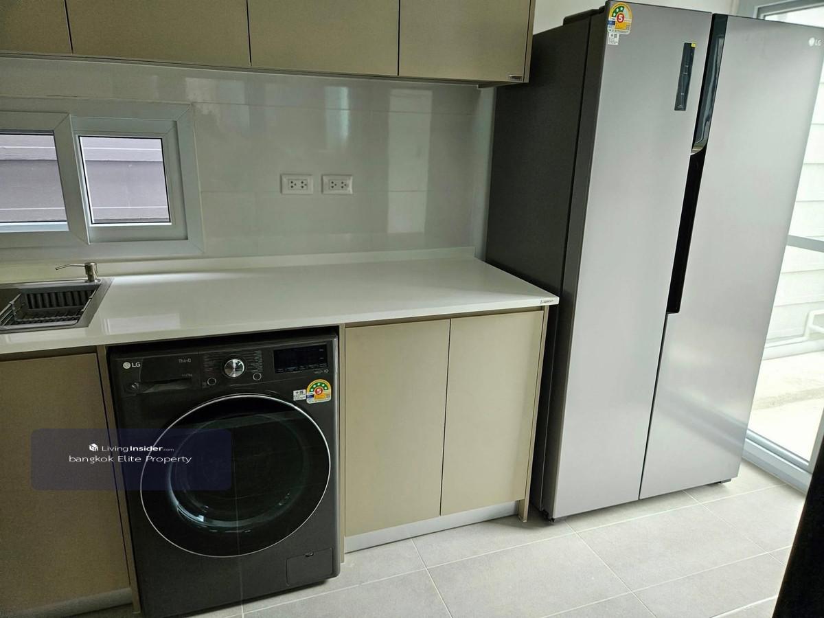 For rent Nirvana Define Krungthep Kreetha, 3 floors, edge plot has garden area. Close to international schools and Community mall Fully furnished, luxuriously decorated Modern design High ceilings Natural light enters well 3-story house + rooftop ✅ Details :: - Land : 35 sq.w - Usable area : 203 sq.m - Bedrooms : 3-4 - Bathroom : 4 - Living room : 1 - Kitchen : 1 - Maids room : - - Parking: 2 ** Not accepting pets ⭐ Facilities :: - Swimming pool, fitness - Club House - Public park - 24 hour security system ❤️ Nearby places :: Brighton Collage, Wellington Collage Pan Asia international school Samitivej Hospital -------------------------------------- 💰RENT : 80,000 THB --------------------------------------- 📞For further inquiries, please contact Mr. Big ☎️Call : Contact number ⏳Line : big Contact number Bangkok Elite Property Happy to provide deposit services for buying, selling, renting houses, real estate , giving advice on bank loans.