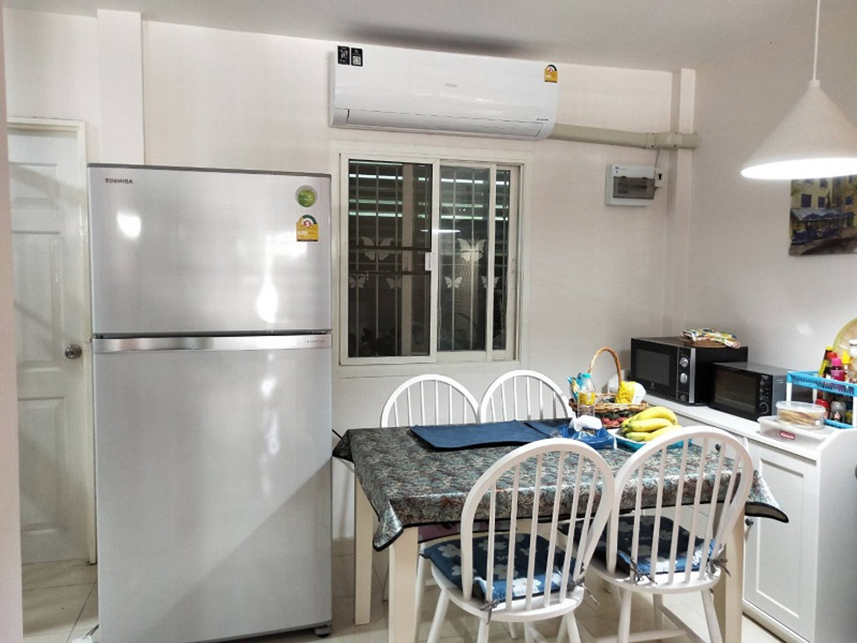 Townhome for sale in Kanlapaphruek Talay Suay Fah Sai (corner unit), Soi Thesaban Bangpu 66, Sukhumvit Road, Thailan Subdistrict, Mueang District, Samut Prakan Province. Site: 20.8 sq.wah (approx. 120 sq.m. usable area). 3 bedrooms, 2 bathrooms, 2 parking spaces (1 in front of the house), built-in kitchen. Includes 3 air conditioners, furniture (dining table, wardrobes), refrigerator, water heater, water filter, water pump, water tank, mosquito nets, and wrought iron security bars. Beautiful, ready to move in. Selling because relocating to another province. Great atmosphere, extended bedroom with sea view. Convenient transportation on Sukhumvit Road. Complete utilities. Near BTS Keha Station. Facing northwest. Transfer fees split equally. Price 2.79 million baht, reduced to 2.65 million baht. Interested in viewing the house, please contact Dao at Contact number. Project amenities: 24-hour security, garden. Nearby places: Wat Asokaram, Miami Bang Pu, Bang Pu Municipality, Ancient City, Big C, Robinson, Samut Prakan Girls' School, Samut Prakan School, Samut Prakan Technical College, Samut Prakan Hospital, Rattharin Hospital, Muang Samut Hospital, Paolo Memorial Samut Prakan Hospital, Ancient City, Sawangkhaniwat Thai Red Cross Society, Bang Pu Industrial Estate, Bang Pu Beach Resort. #HouseForSale #Townhouse #Townhome #BangPu #SamutPrakan