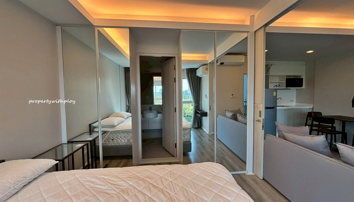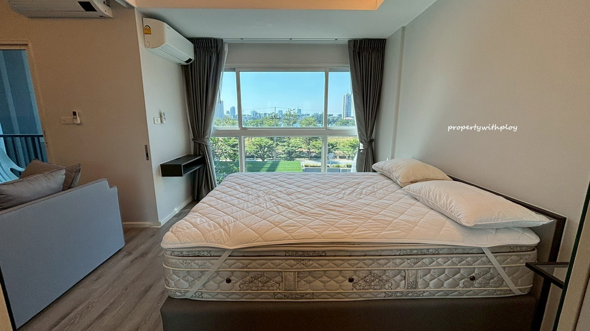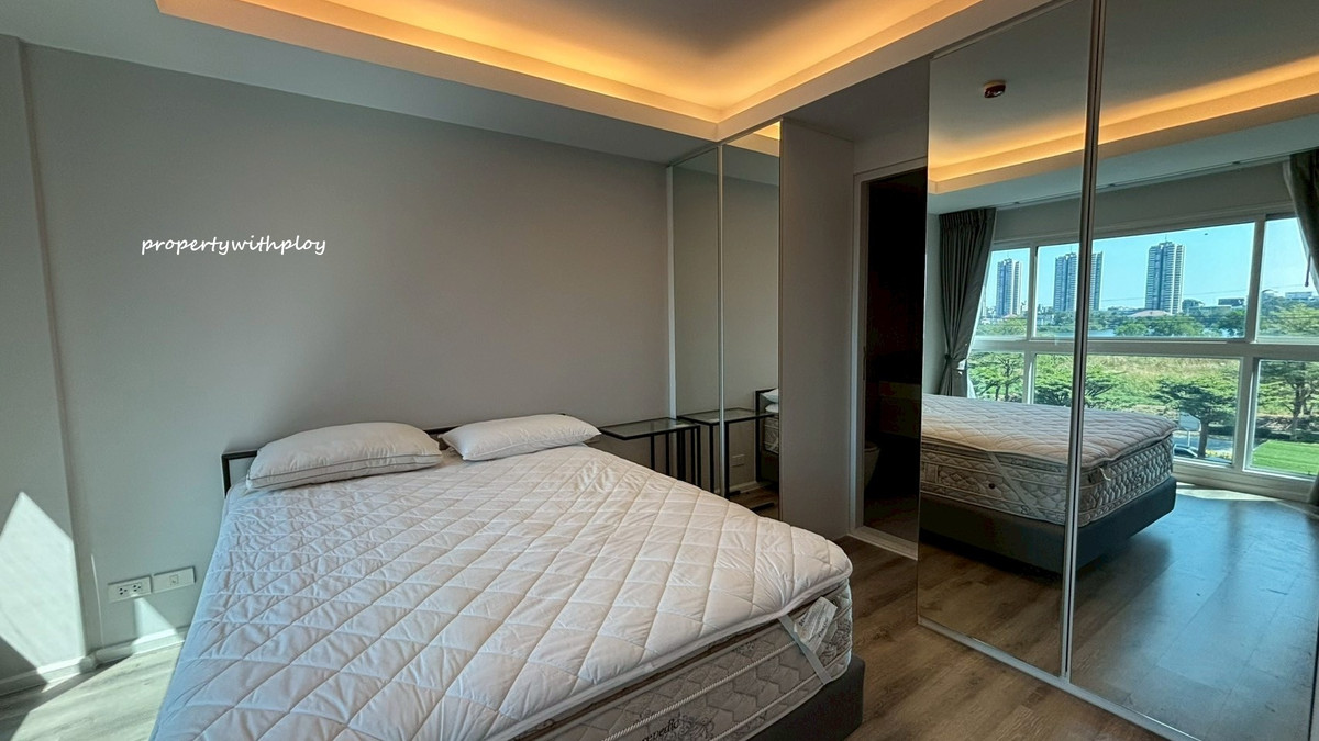 For rent Double Lake Condo Muang Thong Thani Phase 2 near MRT Muang Thong Thani Lake Station 800 meters For rent 11,000 baht/month Size 34 sq m., 4th floor, swimming pool view. The room is airy and comfortable to the eye. See a view of the lake 1 bedroom, 1 bathroom type, with a door separating the bedroom zone, complete with furniture and electrical appliances. Room ready to move in If interested, contact (Ploy) Contact number, Line id: prop.s