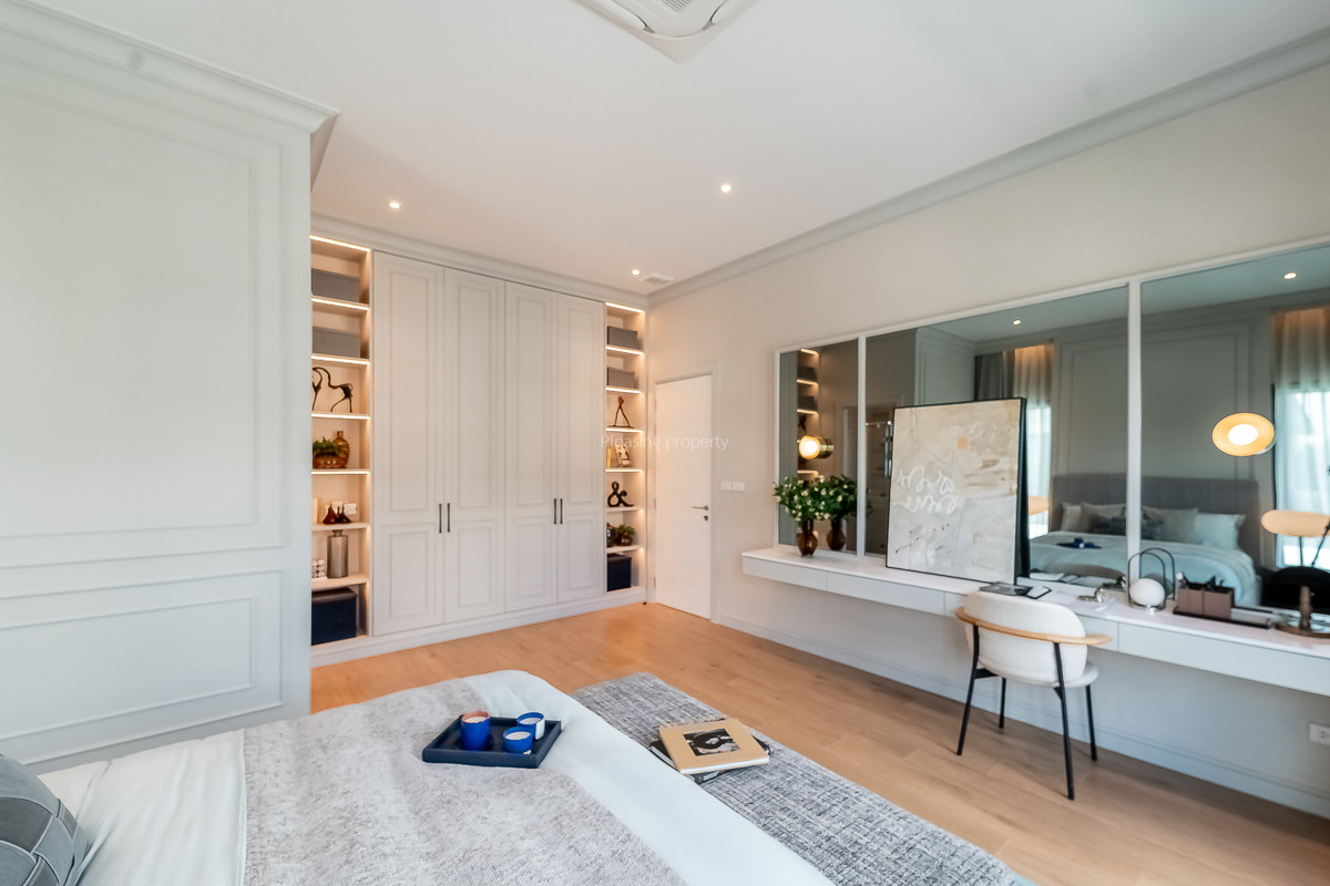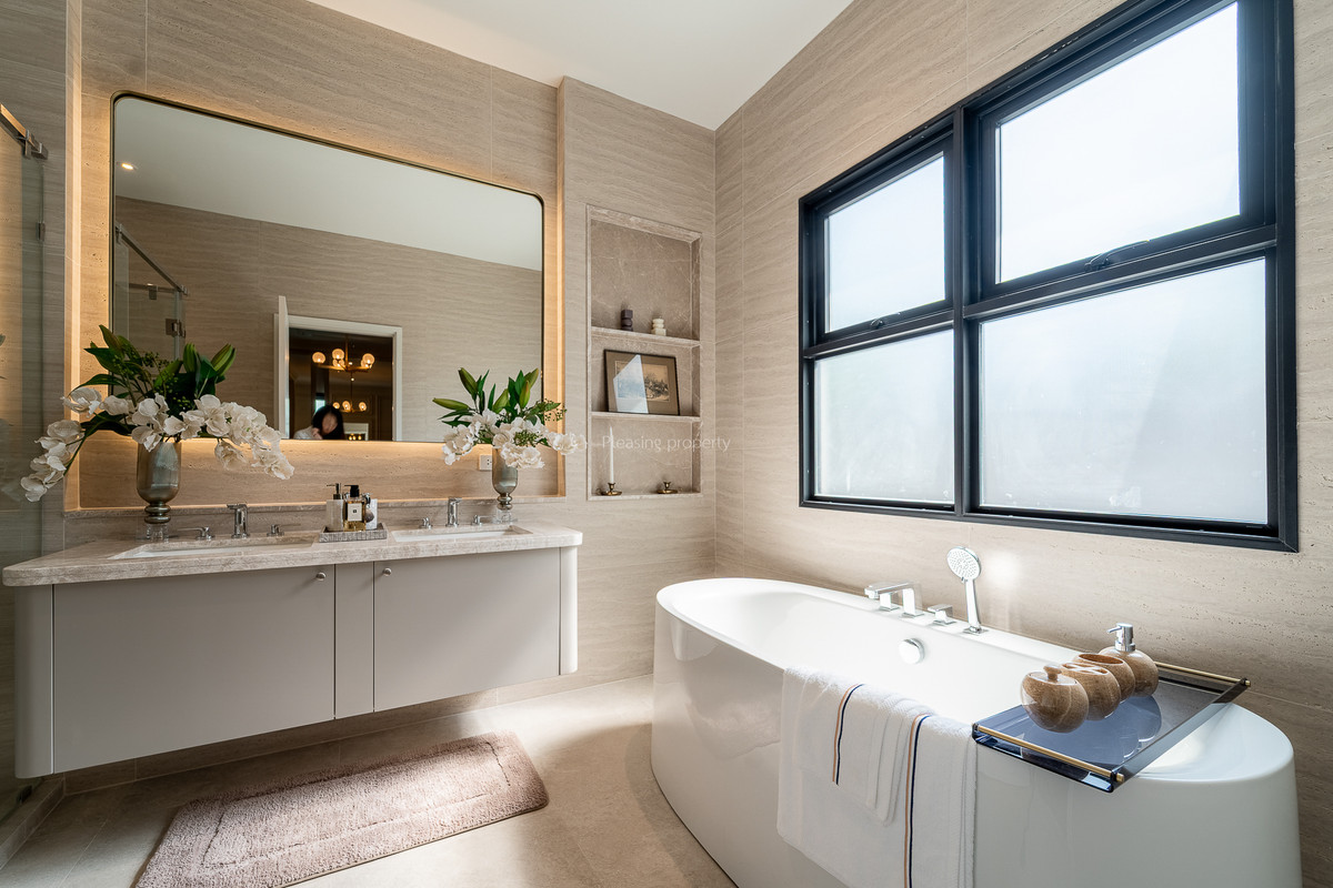 Rare Item ✨ Pool Villa ready to move in from Sansiri --- Bexley - Narinsiri Rama 9-Krungthep Kreetha --- near Little Walk Krungthep Kreetha only 550 meters Brighton College International School ~ 3 kilometers 2-storey detached house with swimming pool Georgian style Revival Arrange the house plan to have good ventilation. Get natural light throughout the entire floor Beautiful, classic house. With Smart home technology Solar Panel, energy saving Home Security, burglar alarm Order via mobile phone Breeze Panel, open house, ventilated Dust Free House, filters PM 2.5 dust down to 0.1 microns EV Charger supports electric train --- 2-storey detached house 5 bedrooms (1 bedroom on ground floor) | 6 bathrooms | 4 parking spaces | 1 maids room | 1 Family Area | 1 swimming pool | 1 EV charger --- Size 171.4 sq m. | Usable area 530 sq m. --- Central area Clubhouse, swimming pool, fitness, garden, CCTV, fence around LIV-24 project, 24-hour security guard, project gate Electric sliding fence --- near the new main road of Krungthep Kreetha. Can enter and exit both the new Krungthep Kreetha Road and the Kanchanaphisek Ring Road . The location is plentiful, easy to find things to eat. There are community malls, Little Walk / Market Place / Nirvana Porch, supermarkets. And international schools have many options for traveling in and out of the city. whether it is Si Rat Expressway Kanchanaphisek Road and motorway --- Coordinates: https://maps.app.goo.gl/ewhesHrAos1fVBMy9 New Krungthep Kreetha Road --- Price 125 million baht --- Line: @pleasingproperty https://lin.ee/3UnV0BW Tel. Contact number www.pleasingproperty.com --- Pleasing property "Curating Homes That Nurture." Choose houses that take care of you.