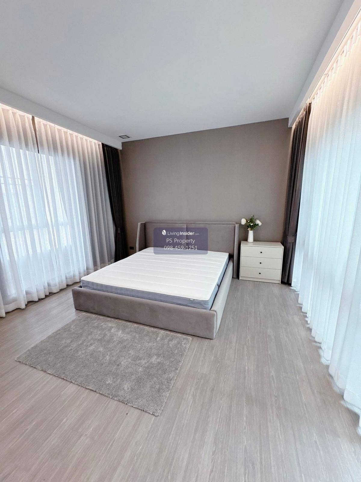 Price: 75,000 baht / month  Usable area: 224 sq.m.  Area: 24 sq.w. Floor: 3 3 bedrooms / 4 bathrooms / 1 living room / 2 parking spaces Amenities: CCTV, key card Access, fitness center, swimming pool, 24/7 security guard, co-working area, common area. Furniture included: TV, microwave, sofa, refrigerator, bed, air conditioner, water heater, Smoke Dispenser, shelf, TV cabinet, wardrobe, center table. House for rent! convenient transportation, near BTS, near the expressway, fully furnished Ready for viewing. Interested please contact: 📞Call center: Contact number 📱Hotline: Contact number 📲Whatsapp: Contact number 🖱️Line: @psproperty https://lin.ee/d8bpOBs Website: https://www.ps-property.co.th/