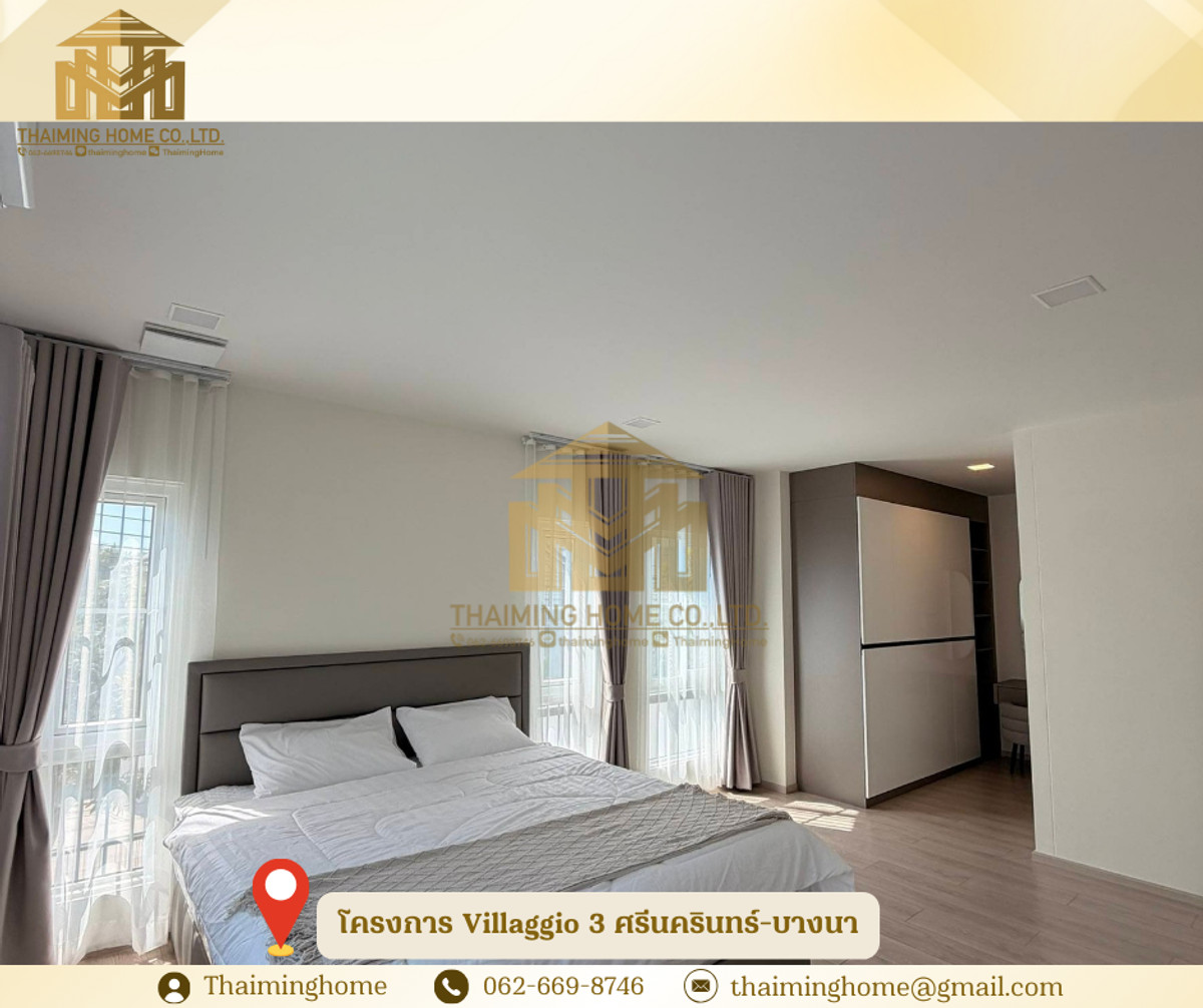 🏡 Single-detached houses for rent, Villaggio 3 Srinakarin-Bangna project [TH5-150126 property code] ✅ Details • Fully furnished and furnished. - The land size is 59 square meters. W. - The usable area is 153 square meters. M. - Four bedrooms, I three bedrooms, I two parking spaces. - All electrical equipment. • full central [fitness/pool/club house] • Welcome, foreigners. 🚇 Nearby Locations - It's near Megabang. 10-15 minutes. - there's a 7-Eleven/market nearby - Bang Pa-In-Rama II Ring Expressway Adjacent - Attach to Burapha Wittayalai Expressway to Chonburi. - an expressway into a city ☑️ Purchase/Rental Conditions - 🔐 2 months' insurance, 1 month's advance - 💸 Rent is only 75,000 baht per month. ----------------------------------------------------------------- บริษัท ไทยหมิง โฮม จำกัด Thaiming Home Co.,Ltd. 泰明房园 房产公司 ------------------------- Contact ติดต่อ : Contact number Contact : Contact number คุณหมิง(中文) Line ID: thaiminghome Line ID: @thaiminghome https://lin.ee/PkkHwYv Wechat : ThaimingHome E-mail : Contact email -----------------------------------------------