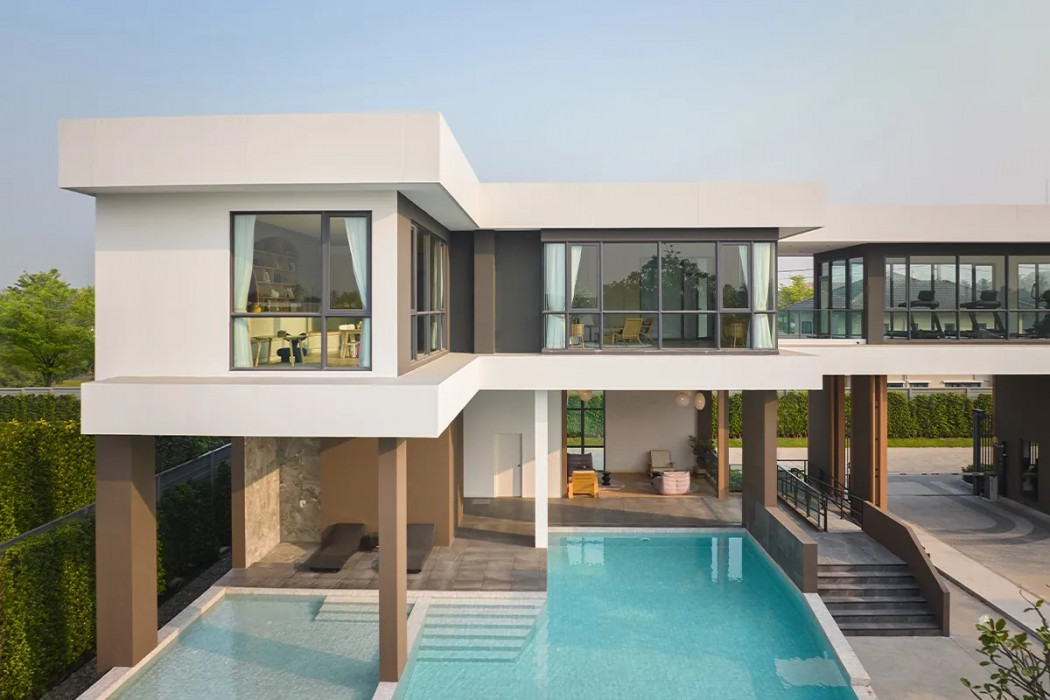 Two-story detached house in Centro Rama 2 - Phutthabucha 2 project. Size and Area: • Land area: 57.6 square wa • Usable area: 260 square meters • Frontage approximately 14.5 meters, depth 15 meters •