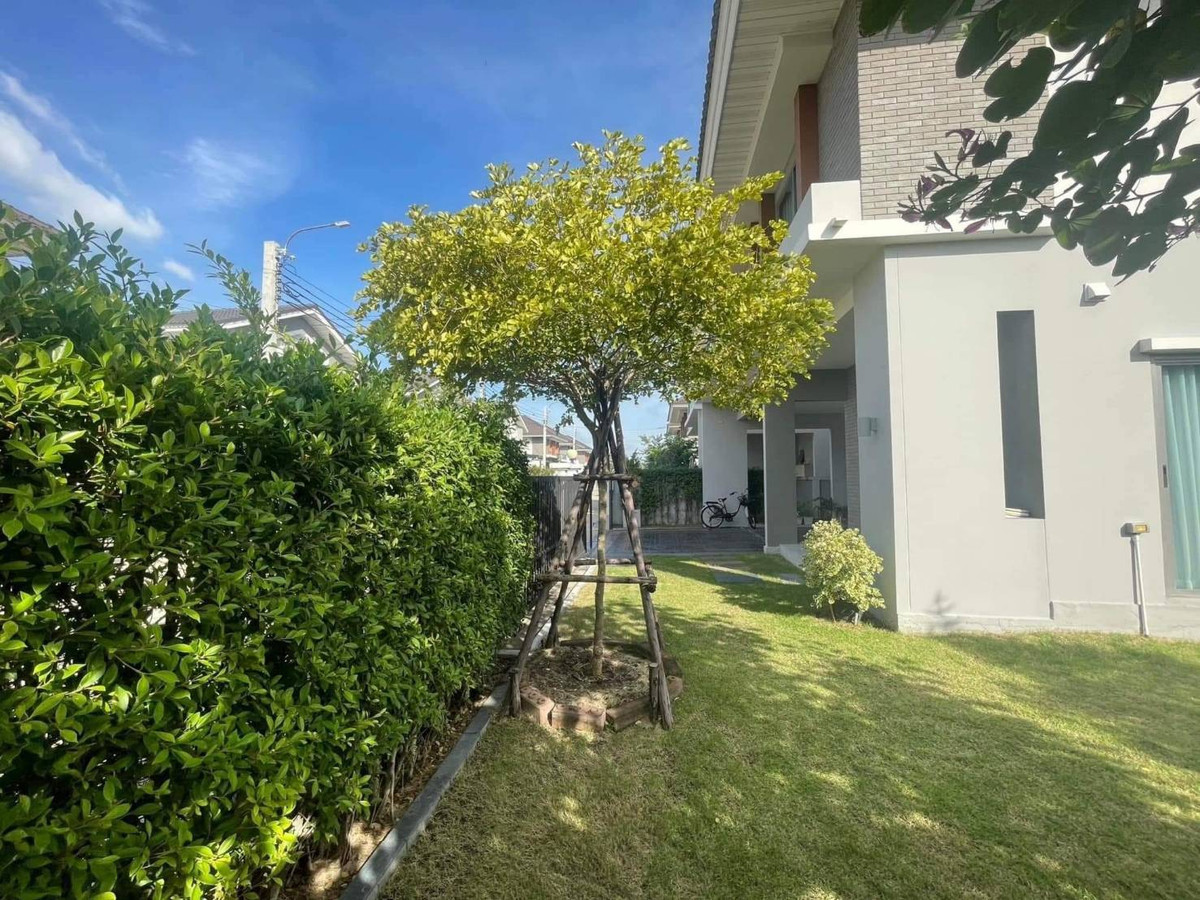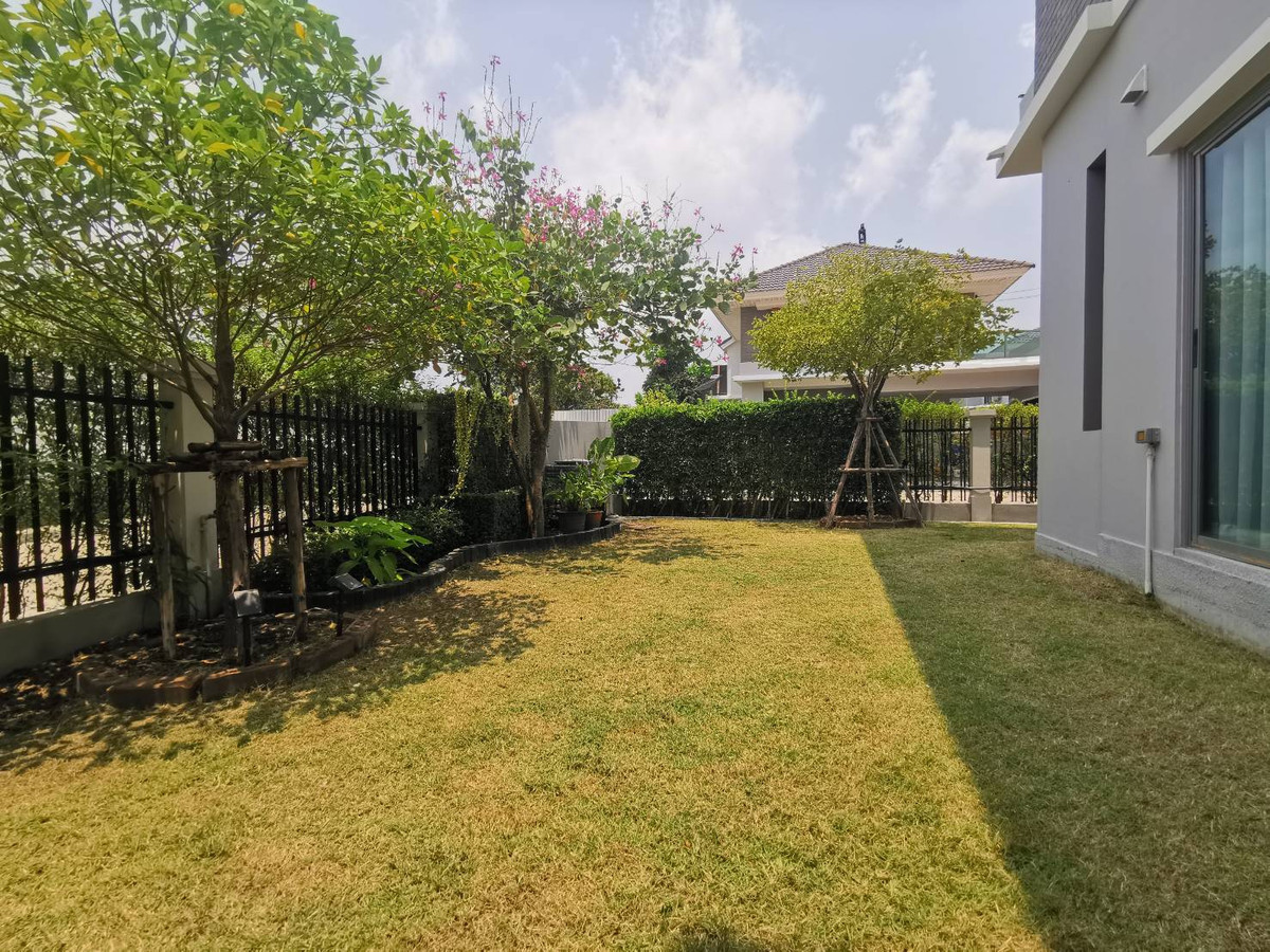 2-story detached house, corner room, with furniture, for rent, Lat Krabang-Suvarnabhumi area. Near The Paseo Mall, Lat Krabang, only 350 meters.