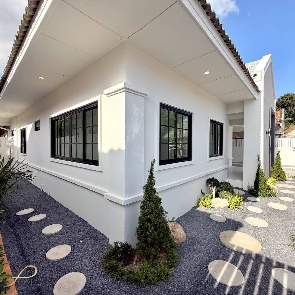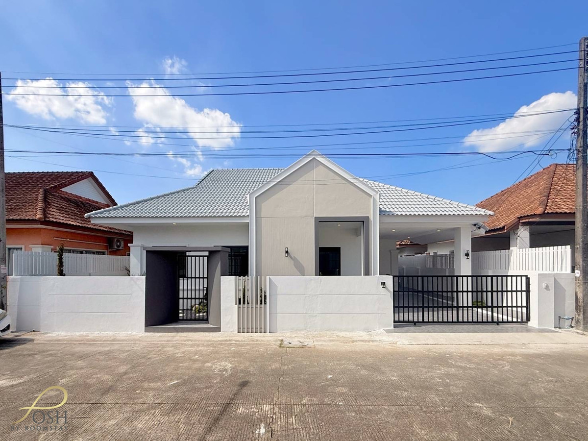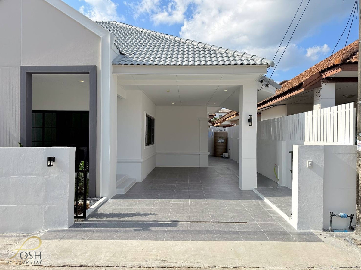 PHANASON PARK VILLE3 (Baan Lipon) Located in Si Sunthon, Thalang, the project is directly on a main road, only 4–6 minutes from the Heroines Monument and Robinson Lifestyle. Modern-style house featuring 3 bedrooms, 2 bathrooms on a 56.2 sq.wah plot. Includes a built-in kitchen with gas stove and hood, covered parking, water tank and water pump, and a decorated living area. After-sales service provided for 3 months.