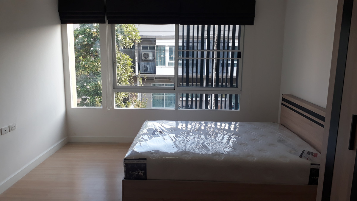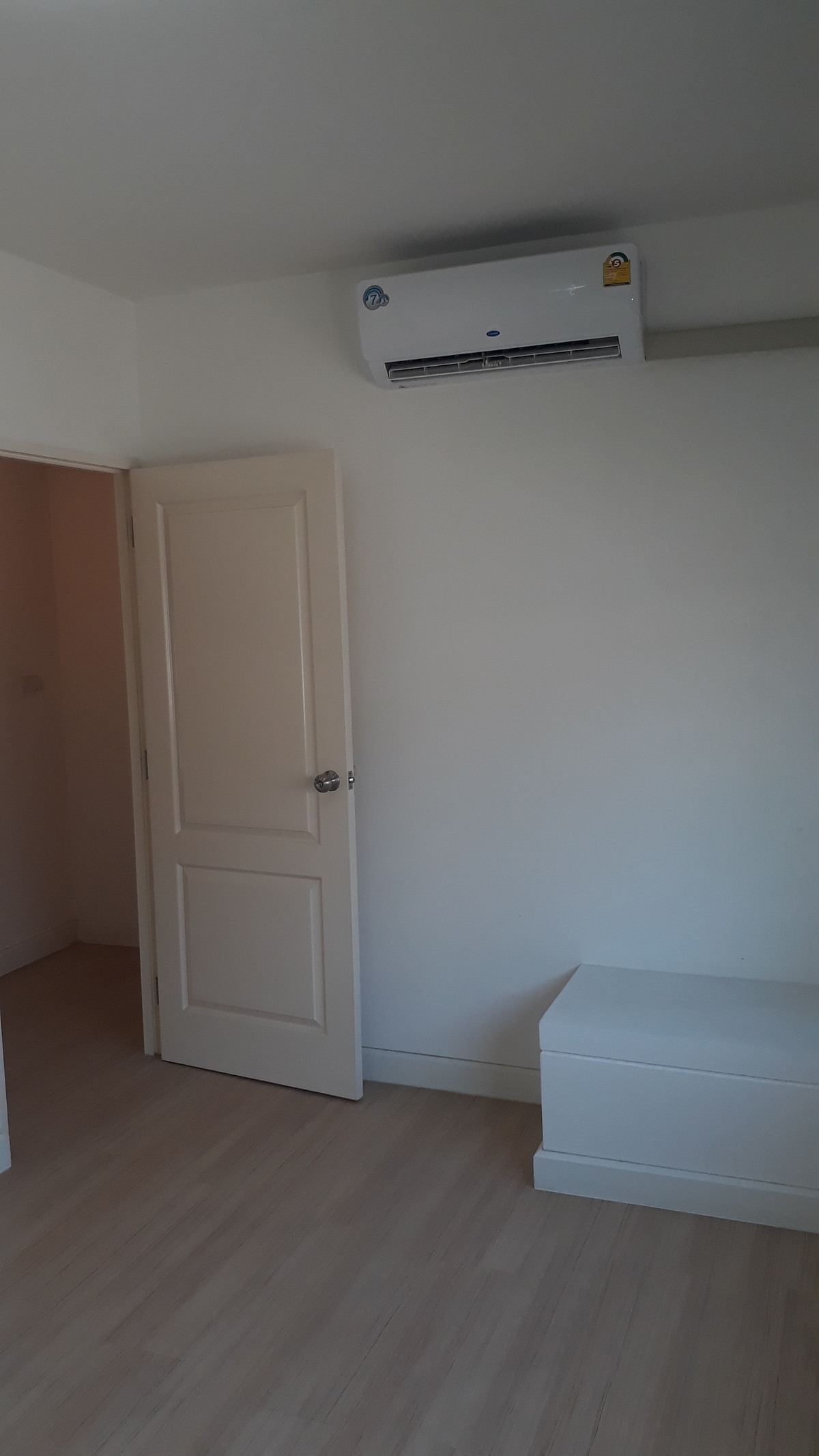 Town home for rent, Indy2 Village, Pracha Uthit 90 (affiliated with LAND&HOUSE), beautiful house, completely newly decorated, ready to move in. Usable area size 100 sq m. 2 floors, 2 bedrooms, 3 bathrooms. Lots of usable space, suitable for living or a small office or live selling things, decorating the house. There are 2 air conditioners in every bedroom, water heater. The bedroom is fully furnished. Below is a western kitchen with a built-in refrigerator, microwave or can be used to save a house.
