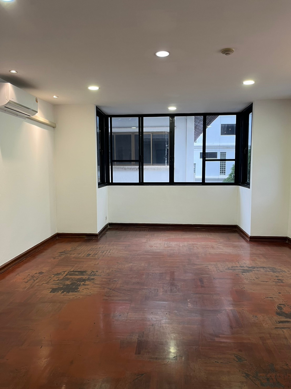 (If interested, tel Contact number, this number is the only one) HOME OFFICE for rent, good location in the middle of Soi Ruamrudee Soi 2, prime location in the heart of the city, width 8 meters, usable area 400 sq m., 4 floors, 4 bedrooms, 5 bathrooms, 5 air conditioners, 3 water heaters, parking for 2-3 cars, about 1km from the BTS Skytrain.