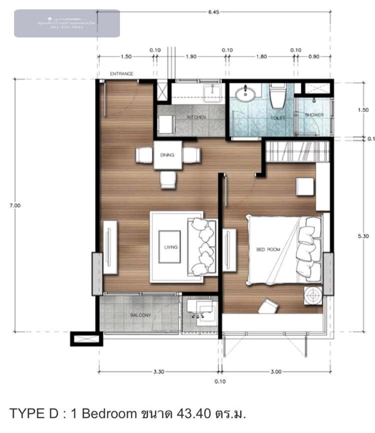 🟢🟢 Condo for rent Sukcharee Life Laksi 🟢🟢 ✨ Wide corner room, comfortable, close to the elevator, private, ready to move in immediately ✨ 🏢🏢 Room information • Size 44 sq m • 7th floor (8-story condo)