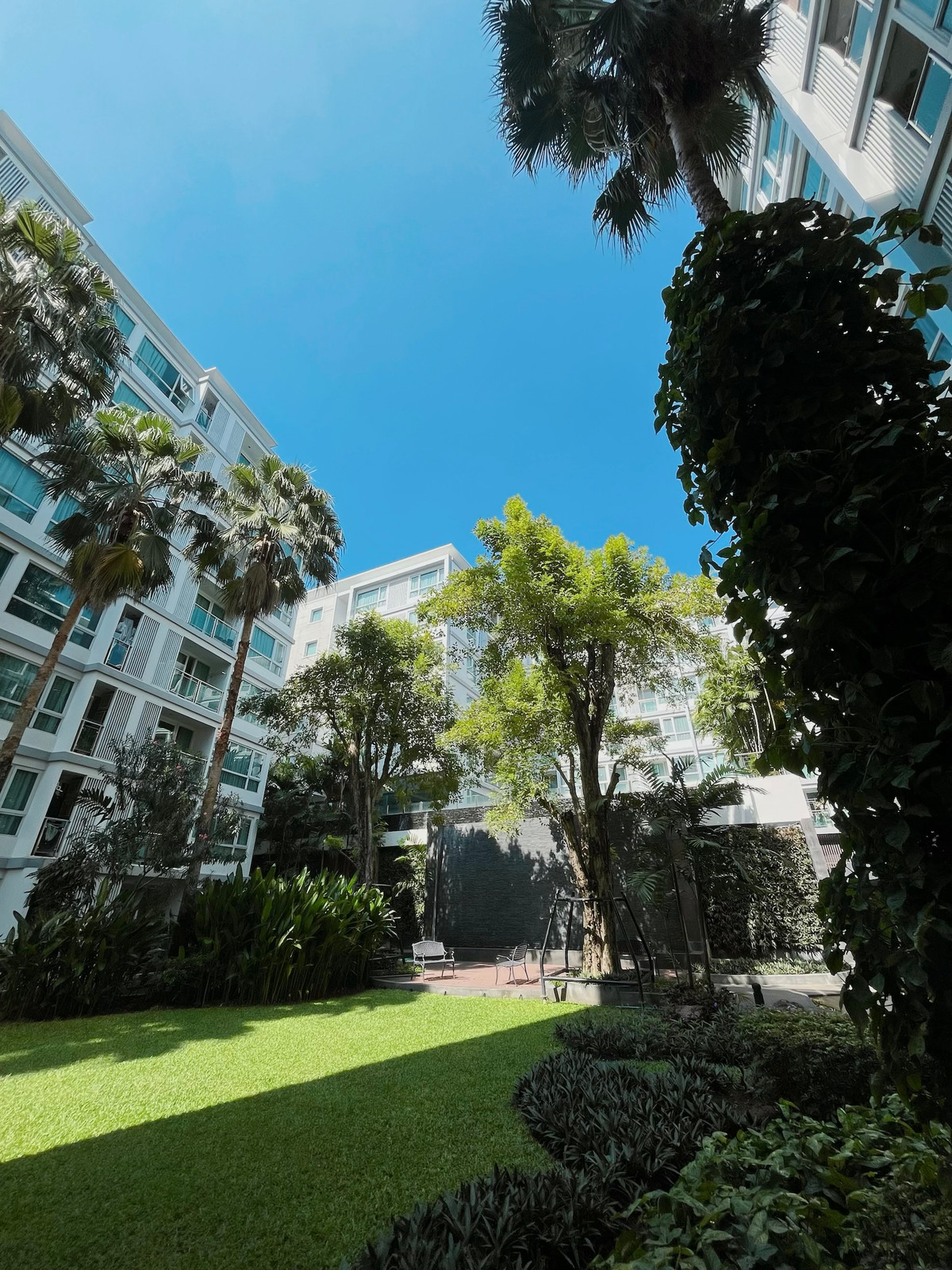Condo for rent Mayfair Sukhumvit 64 , 1st floor, beautiful view, good condition room, quiet condo , 350 meters walk to Punnawithi BTS and close to the expressway **Pets not allowed** To make an appointment to view the room, add Line: a_supanya28