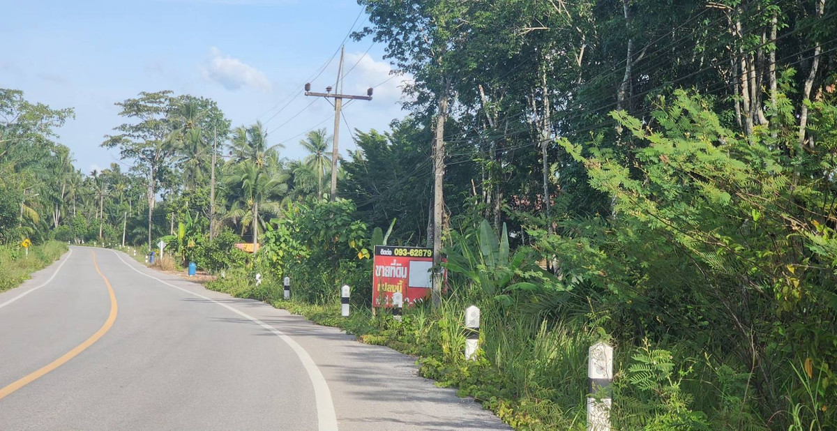 Land for sale, 53 rai, Huai Yot, Trang | Single title deed, next to the road, rubber-palm plantation.