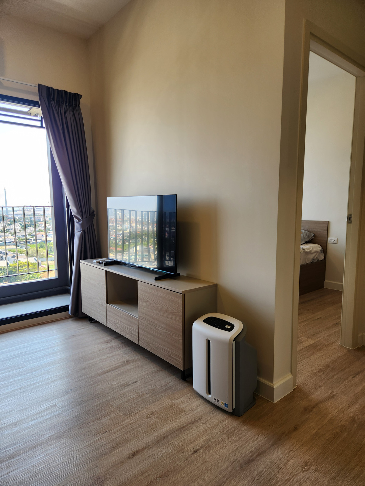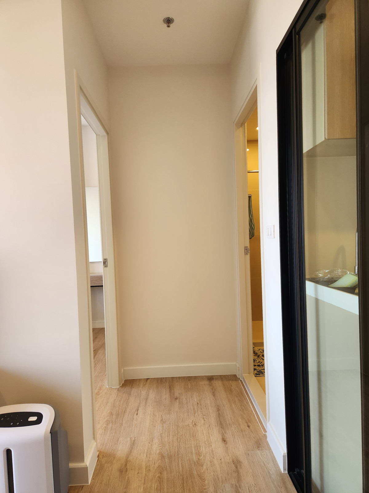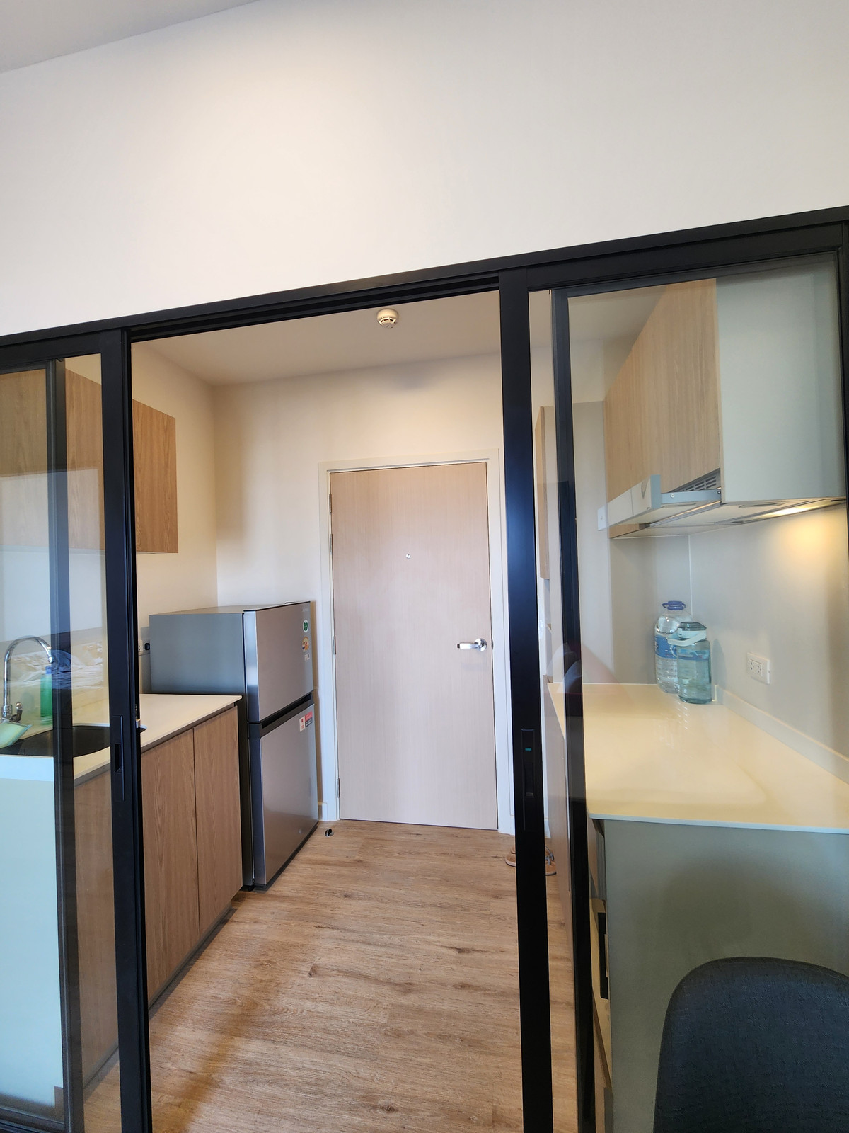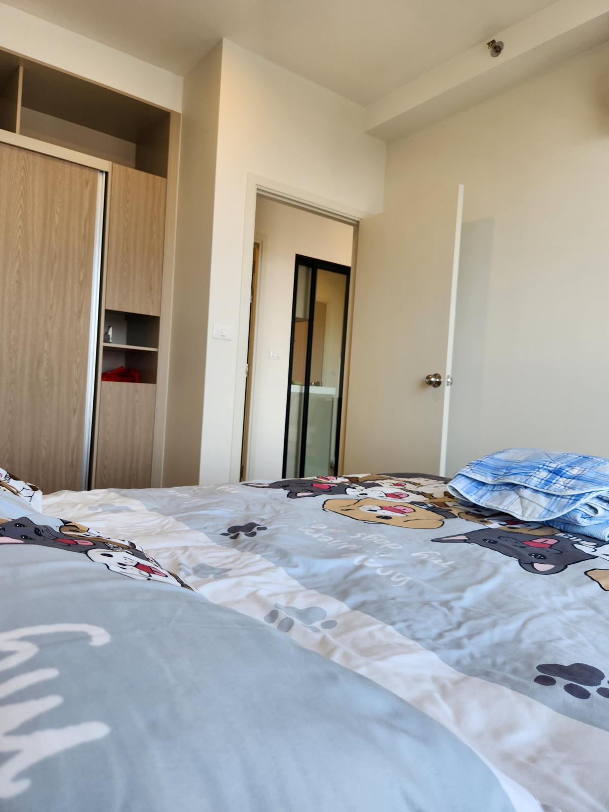 1 bedroom, 1 living room, 1 bathroom with a separate kitchen zone. Complete with range hood, microwave, refrigerator 1st hand room, never lived in. The room is very new for rent 10,000฿/month