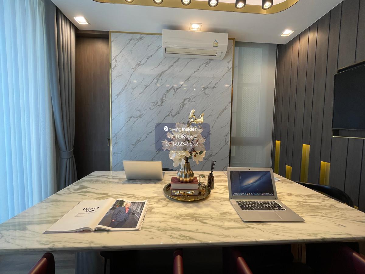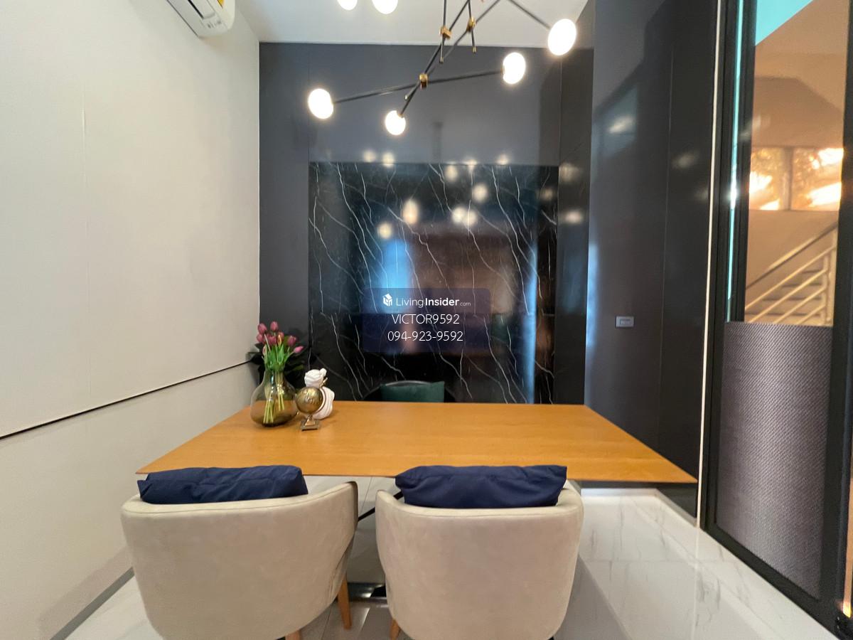 The most dignified place in a new business location.. Luxurious 5-story home office for sale, Metier Rama 9 project (Metier Rama 9), designed under the concept of superiority. Providing maximum privacy in a quality society for only 8 families. Answering the needs of both premium living and office space that reflects the image of success ✨ Highlights that make you the owner Space & Function: Spacious usable area of 560 sq m on 46.70 sq m of land, divided into perfect proportions on every floor Private Lift: Install a private elevator inside the building for convenient up-down access to the 5th floor Parking: No problem with parking as well. Private parking for up to 6 cars Smart & Secure: Peace of mind with the entire Home Automation system with project fence up to 3.5 meters high and electric sliding doors 📍 Prime location.. connected to all conveniences (Soi Ramkhamhaeng 15) Next to Shopping Hub: Easy walk to The Mall Ramkhamhaeng, close to Foodland, The Nine and Central Rama 9 Near the BTS: convenient travel, next to MRT. Ramkhamhaeng Station Connected to the city in just a few minutes near educational institutions & hospitals: Bodindecha (Sing Singhaseni) School, Ramkhamhaeng University and Ramkhamhaeng Hospital 🏢 Project information and facilities Roads within the project are 6.78 meters wide, easy to enter and exit. Not crowded strict security system The fence around the project is 3.5 meters high (2 m. solid fence + 1.5 m. battens) Modern, simple, elegant design that enhances the business image to make it stand out 📞 Call: Contact number (Victor) 📲 Line ID: Vic209546