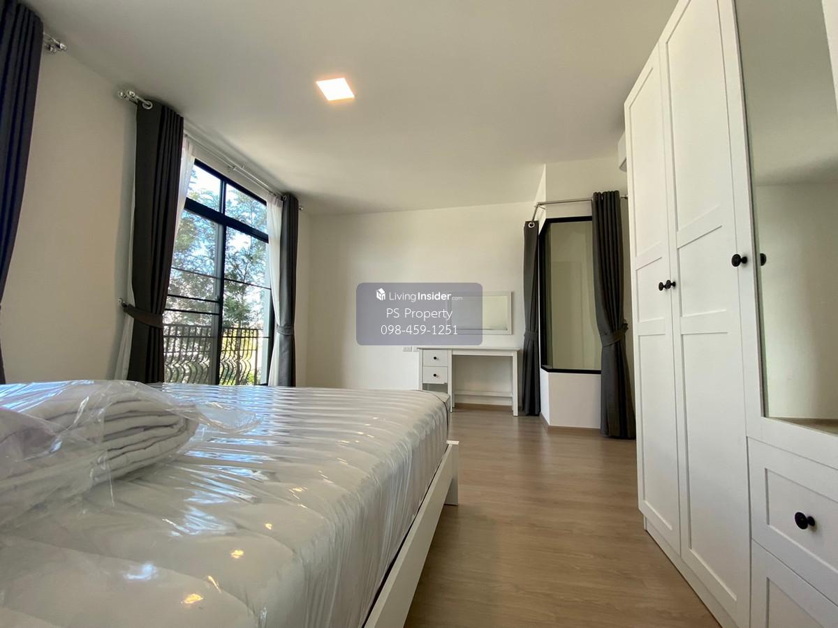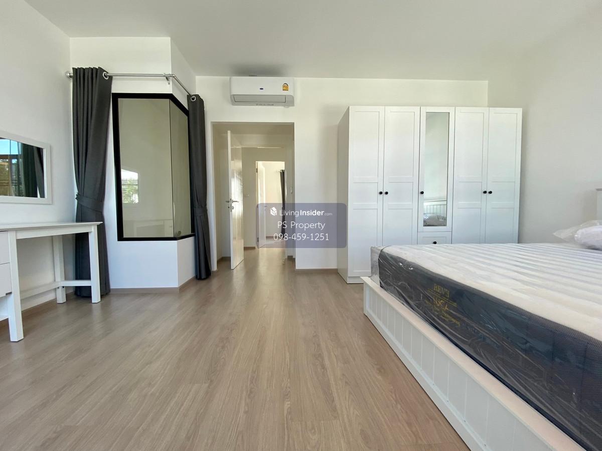 Price: 30,000 baht / month Usable area: 89 sq.m. Area: 18 sq.w. Floor: 2 2 bedrooms / 3 bathrooms / 1 living room / 2 parking spaces Amenities: CCTV, key card Access, fitness center, swimming pool, 24/7 security guard, co-working area, common area. Furniture included: TV, microwave, sofa, refrigerator, bed, air conditioner, water heater, Smoke Dispenser, shelf, TV cabinet, wardrobe, center table. House for rent! convenient transportation, near BTS, near the expressway, fully furnished Ready for viewing. Interested please contact: 📞Call center: Contact number 📱Hotline: Contact number 📲Whatsapp: Contact number 🖱️Line: @psproperty https://lin.ee/d8bpOBs Website: https://www.ps-property.co.th/