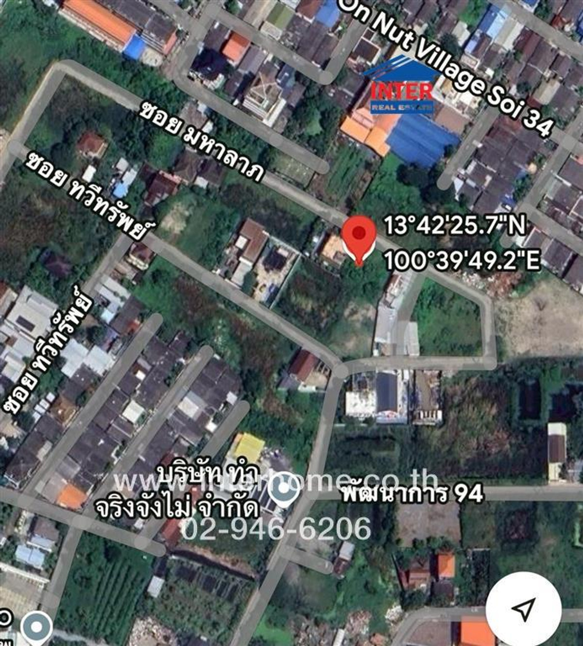 Ms. Jidapa Panthukul (Am) Contact number: Contact number Office: Contact number Inquire via Line. https://lin.ee/xTo07Pn Line ID: @interhome Property code: 65883 Size 98 sq m Location: Land, Soi Phatthanakan 94, Phatthanakan Road, Phra Khanong District, Bangkok Details near Suan Luang Rama 9, Jindarat School Seacon Square Srinakarin, Paradise Mall Empty land for sale. Soi Phatthanakan 94, Phatthanakan Road, Chaloem Phrakiat Rama 9 Road, Prawet Subdistrict, Phra Khanong District, Bangkok Empty land already filled in, next to the road in an alley The land is rectangular The land is 15 meters wide and 29 meters deep (approximately) The road in front of the land is 6 meters wide and is a yellow area. (Its a low-density residence) Water and electricity are accessible On the side is a warehouse. With a small detached house entering Soi Phatthanakan 94, sub-alley Soi Mahalap , property facing northeast Good location, nearby places: near Suan Luang Rama 9, Jindarat School Seacon Square Srinakarin, Paradise Mall, Vibharam Hospital Srinakarin Train Market Standard Chartered International School Mega Bangna Mall Rangsit University 2 Convenient transportation: Phatthanakan Road, Chaloem Phrakiat Rd. 9 Srinakarin Road On Nut Road, Lat Krabang Interhome Realty Estate Company LimitedInterhome Realty Estate www.interhome.co.th Tel. Contact number https://www.interhome.co.th/propertydetail.php?propcode=65883