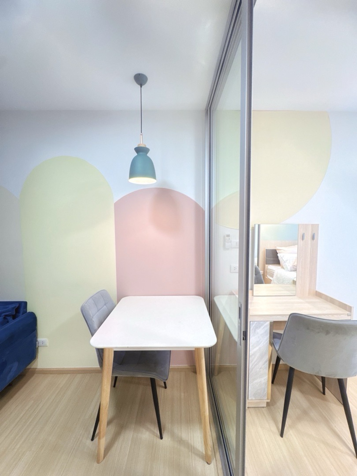Ready to move in! For rent, Plum Fresh Rangsit, Building A, 3rd floor For rent! Plum Fresh and fully furnished, ready to move in ✨27 sq m. 1 bedroom, 1 bathroom, 1 kitchen, 1 living room Ready to move in 🔺Furniture Complete electrical appliances (with washing machine) Furniture - 5 foot bed, sofa - TV, TV table - Microwave - Dining table, chairs - Water heater - Washing machine - 2 air conditioners 12000, cool - Refrigerator Microwave 🔥 Rent 10,000 baht per month, including common areas 2 year warranty (2 month warranty, 1 month advance) 📱 If interested, contact Khun He https://lin.ee/K3CGzU8